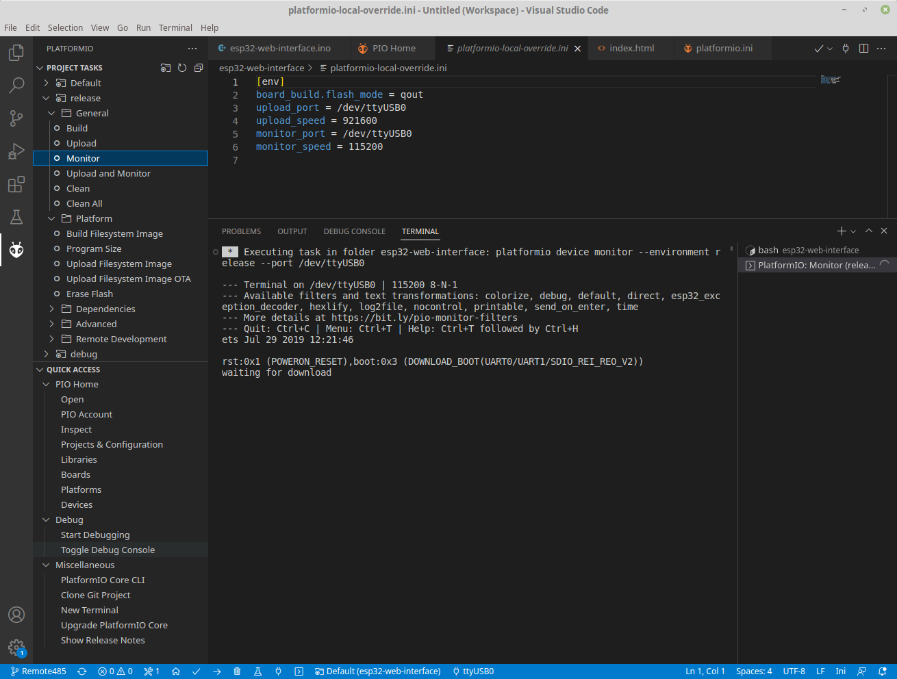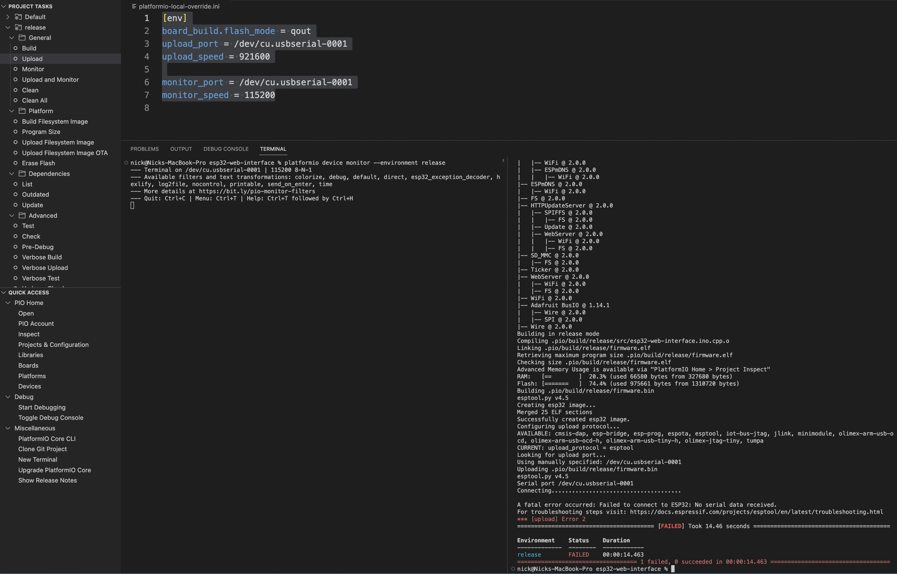 I tried the Arduino & Platform.io methods and changing anything obvious (like the serial port ID), but I am getting various errors depending on which method used. I also don't see ESPRESSIF ESP32-WROOM available in the Arduino IDE board manager, and the platform.io configs have a lot of references to ESP8266xxx libraries, so I'm not sure if I am going down the right path here. I searched GitHub for an updated/different repo but didn't find anything.