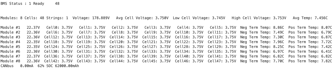 I recently loaded the Tesla modules into the 'belly' battery box and spun up SimpBMS. Impressive to see that after two years on the shelf the difference between high and low cells on 8 modules is 8mV