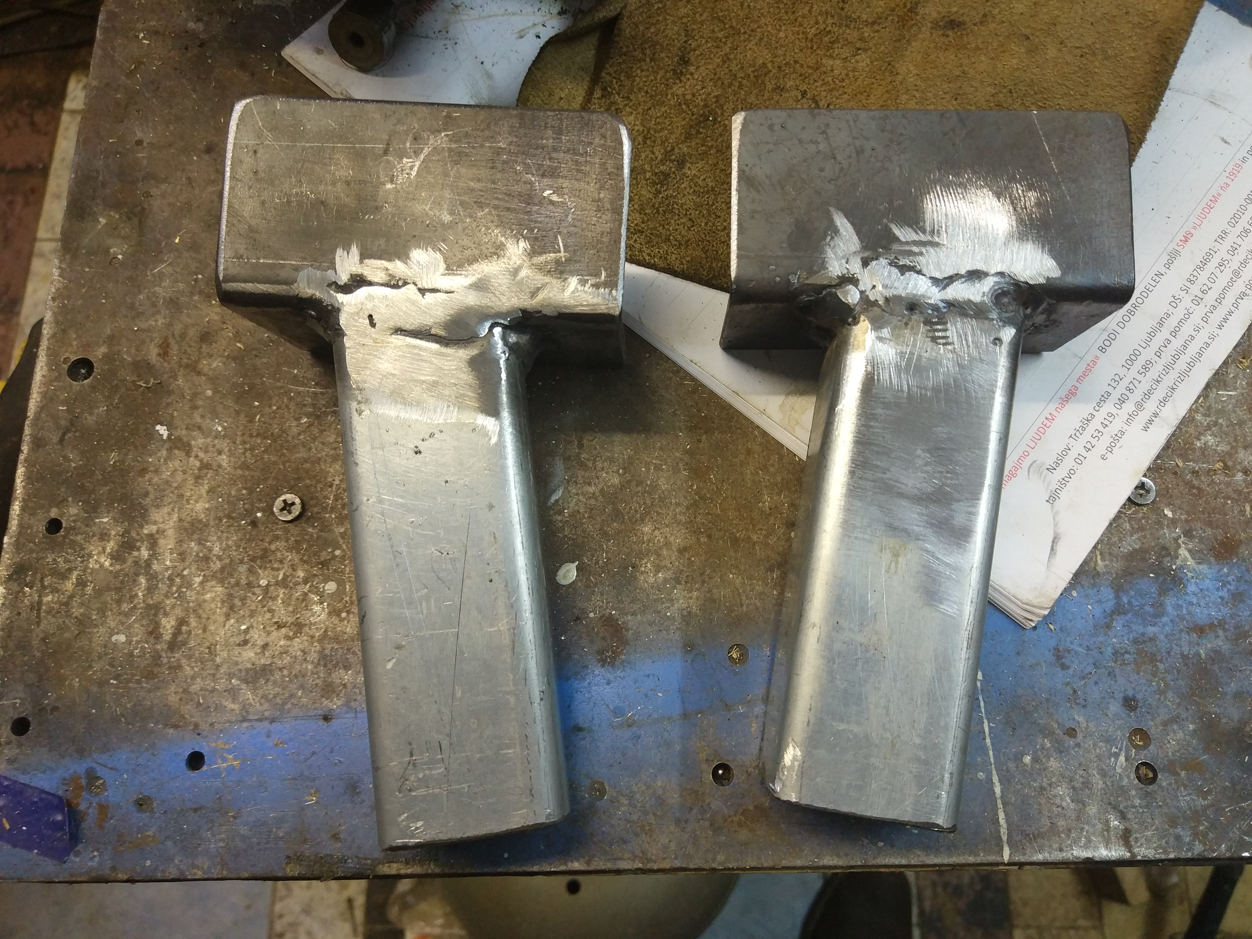 Also i decided to bolt inverter to the battery box side. This will give me more space for cable routing. The front fittings will carry another U channel, but box will lie on it directly. I welded that with my new MIG inverter welder with flux wire. I consider the process rather easy. The device is easy to setup. 0.8mm wire is elegant and good for most sheet metal. The only real problem is flux emits a lot of smoke that shields the arc. This remains on the weld as ash that has to be cleaned off after. Otherwise the welds are strong and good looking.