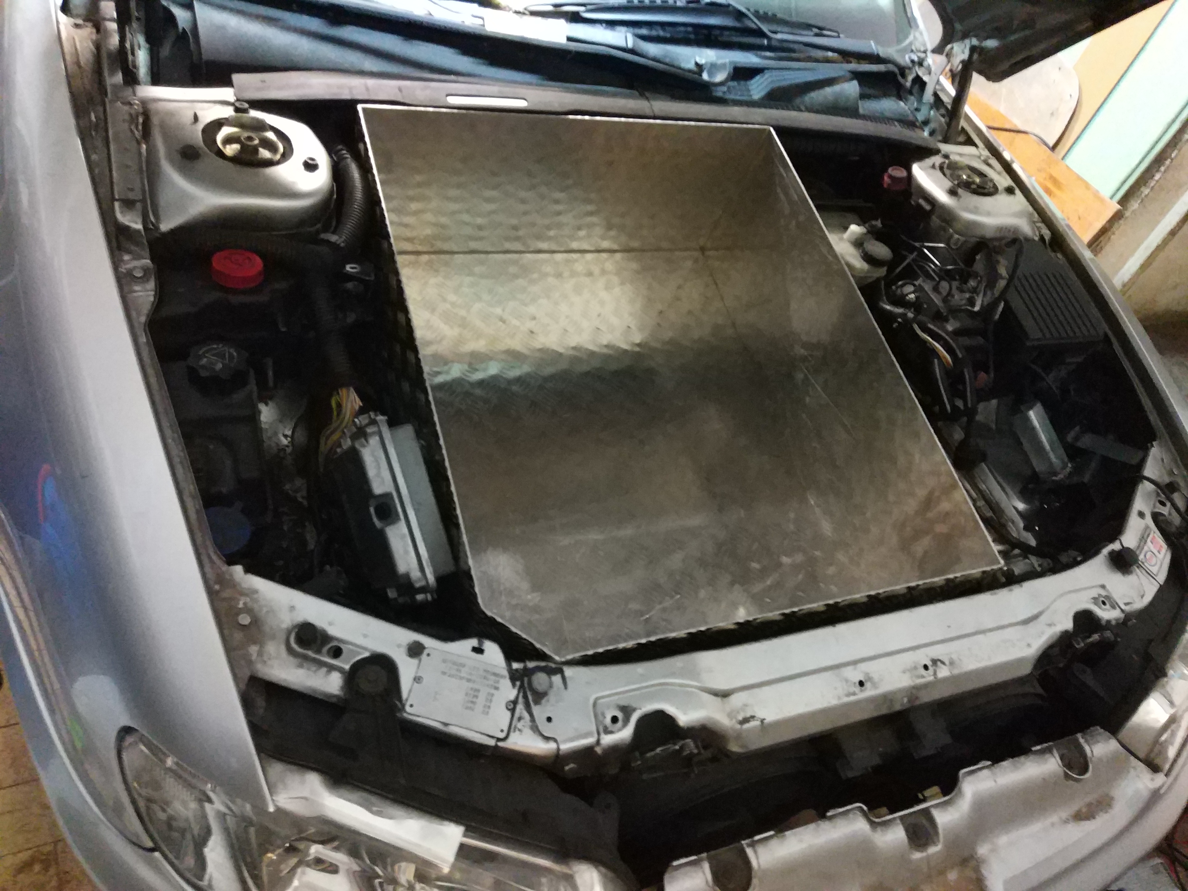 I measured space under the hood and made a model of front box cross section to give me a feel how high the box will sit under the hood.