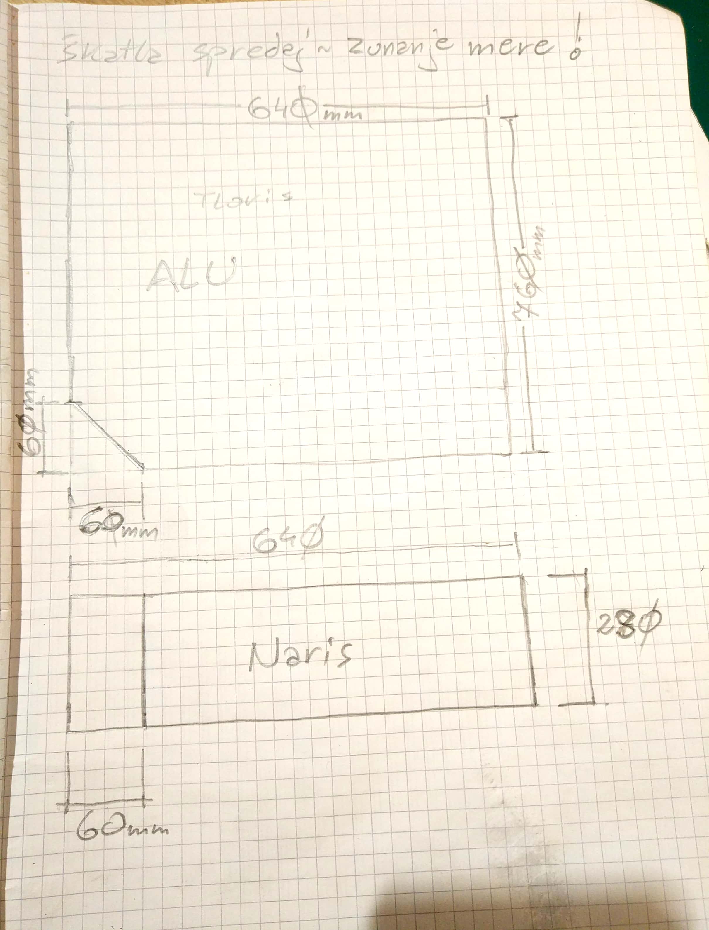 But in the end i had to account for the front curves. I must be able to replace the light bulb and service the connectors there. So i decided to take an edge off from the right side of the box. Material will be 3mm aluminum. While i got the box made i designed the fittings and frame to install the box.