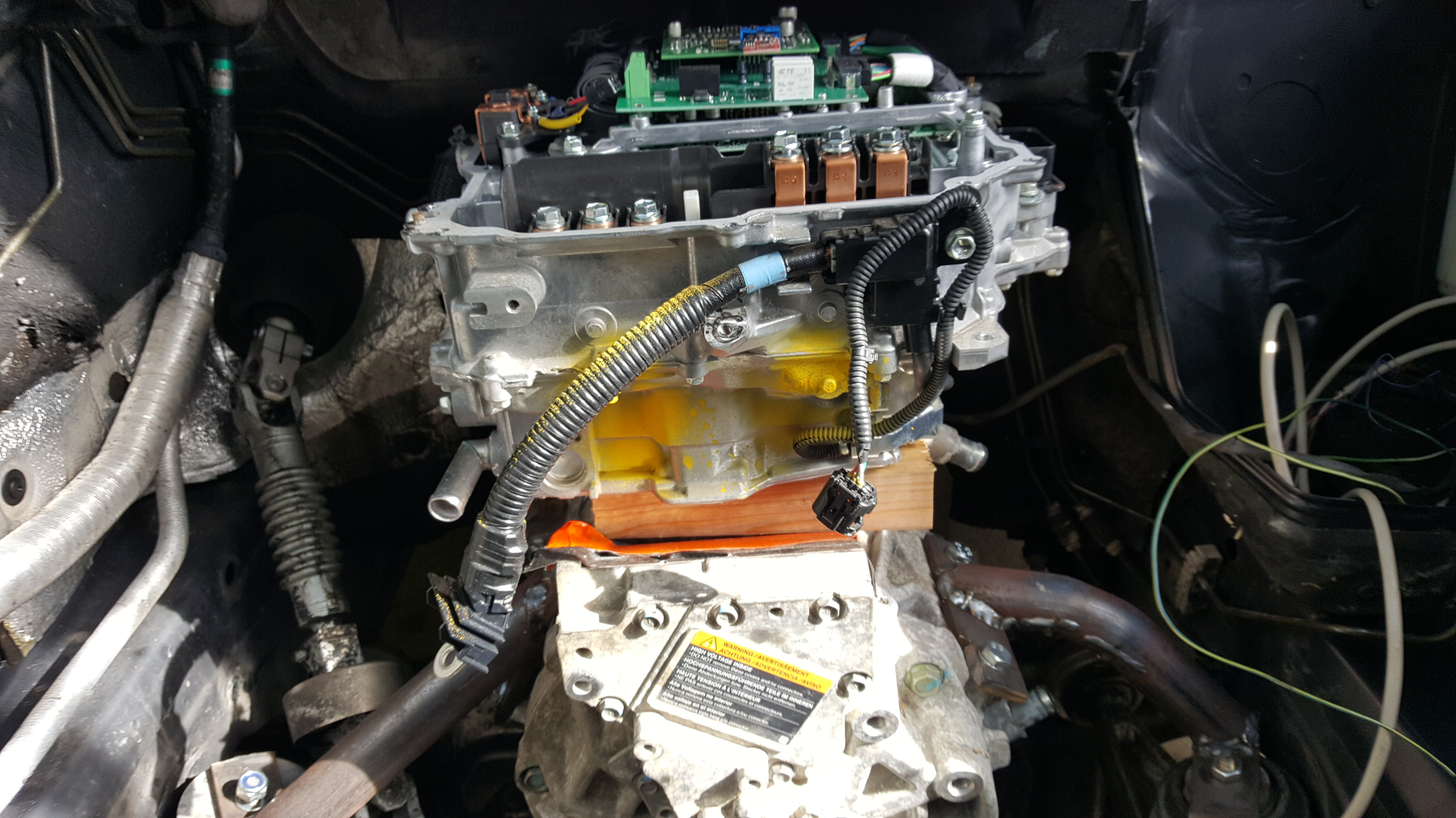 Some more progress. Motor now mounted and have started mocking up the positioning of the Lexus inverter.