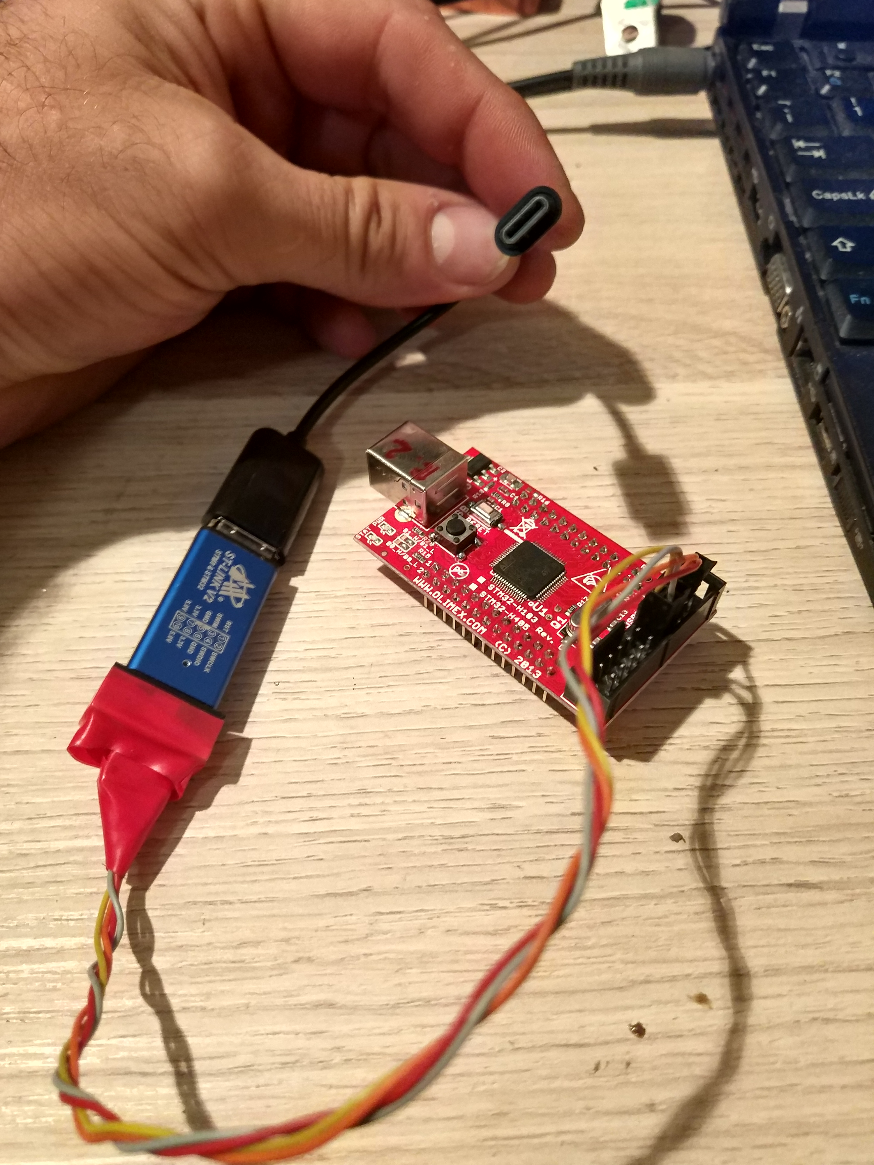 Next you need SWD to JTAG or some such adapter. You may work out your own from SWD cable, but i use Olimex adapter here