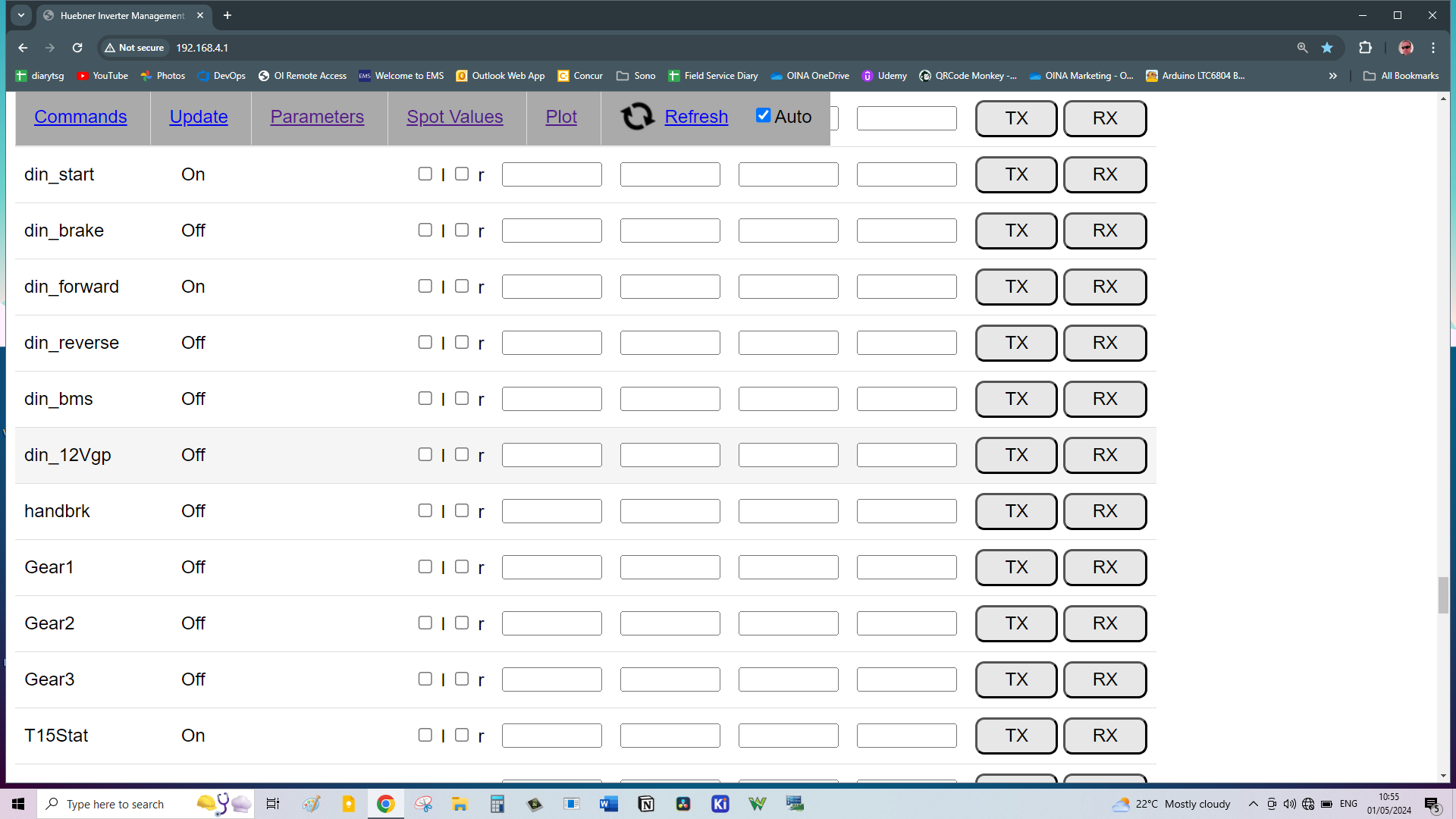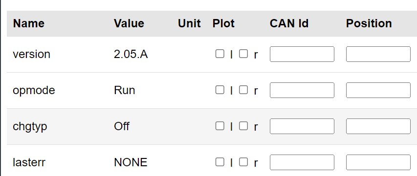 I am testing Zombieverter VCU and I am having problems with VCU not switching into the Run mode. I currently have only Ignition on connected on Pin 15 Forward and reverse on Pins 53 and 54 and start on pin 52. I can see that all abovementioned buttons are registered as dinstart and dinforward etc. I have tried changing udcmin to a diffrent values but this did not make any difference. It seems as one of the conditions for it to go into a run mode is not met. Has anyone experienced this issue and what else could I check in my settings? I attached my parameters file.