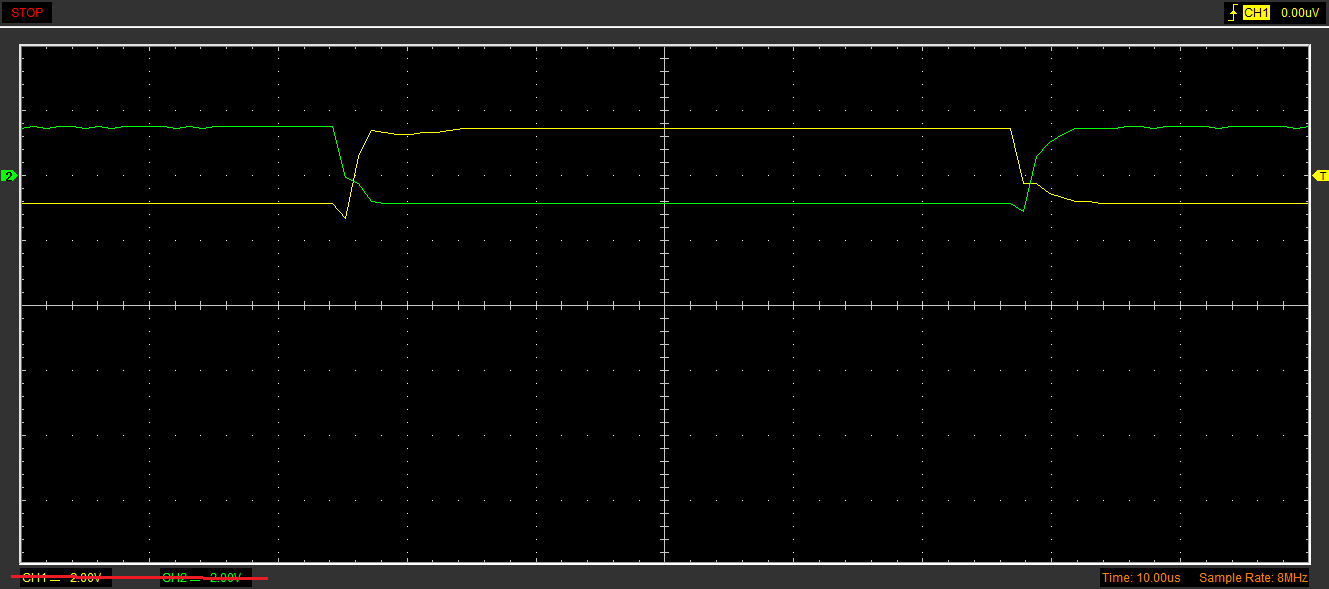 Johannes, what do you think about it ? Before replacing SI8261BBC, Gate Driver 1 output, (yellow - G TOP, GND - E TOP), (green G BOT, GND - E BOT) (IGBT disconnected) After replacing SI8261BBC, Gate Driver 1 output, (yellow - G TOP, GND - E TOP), (green G BOT, GND - E BOT) (IGBT disconnected)