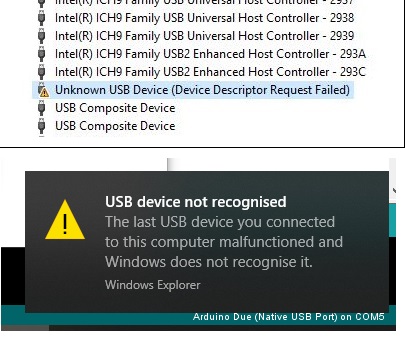 After that, I proceeded with getting on with the Arduino IDE with the board connected up. When I connect up my FTDI or Arduino Due, no problem. They setup just fine and you can see them. However, when I connect the Leaf VCU, I just get USB connection errors. I try and update drivers with no success. All drivers are up to date.
