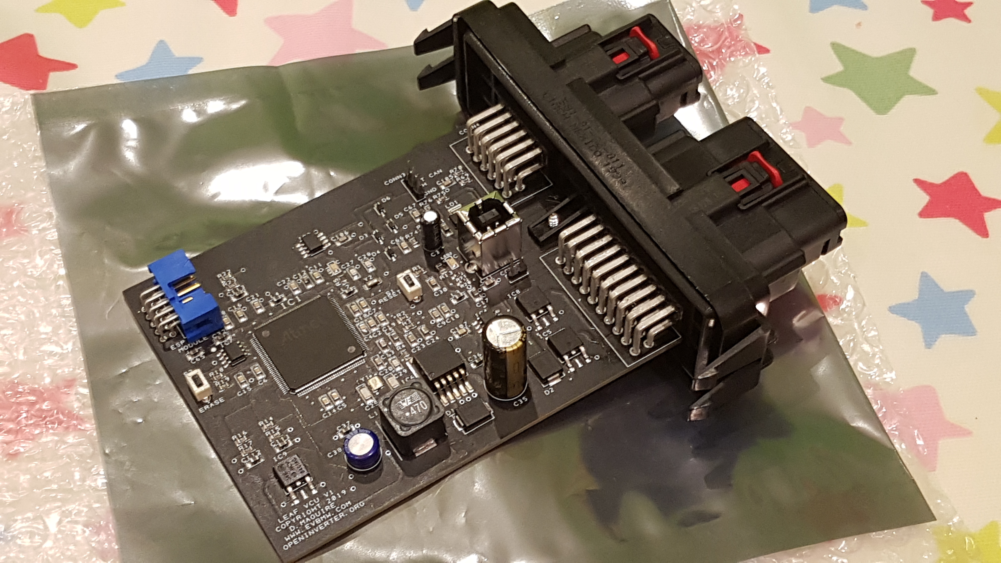 Took a while but, got the board back from resoldering the microcontroller. Nice job too. Today I finished soldering the remaining items including wiring up and labelling the VCU connectors.