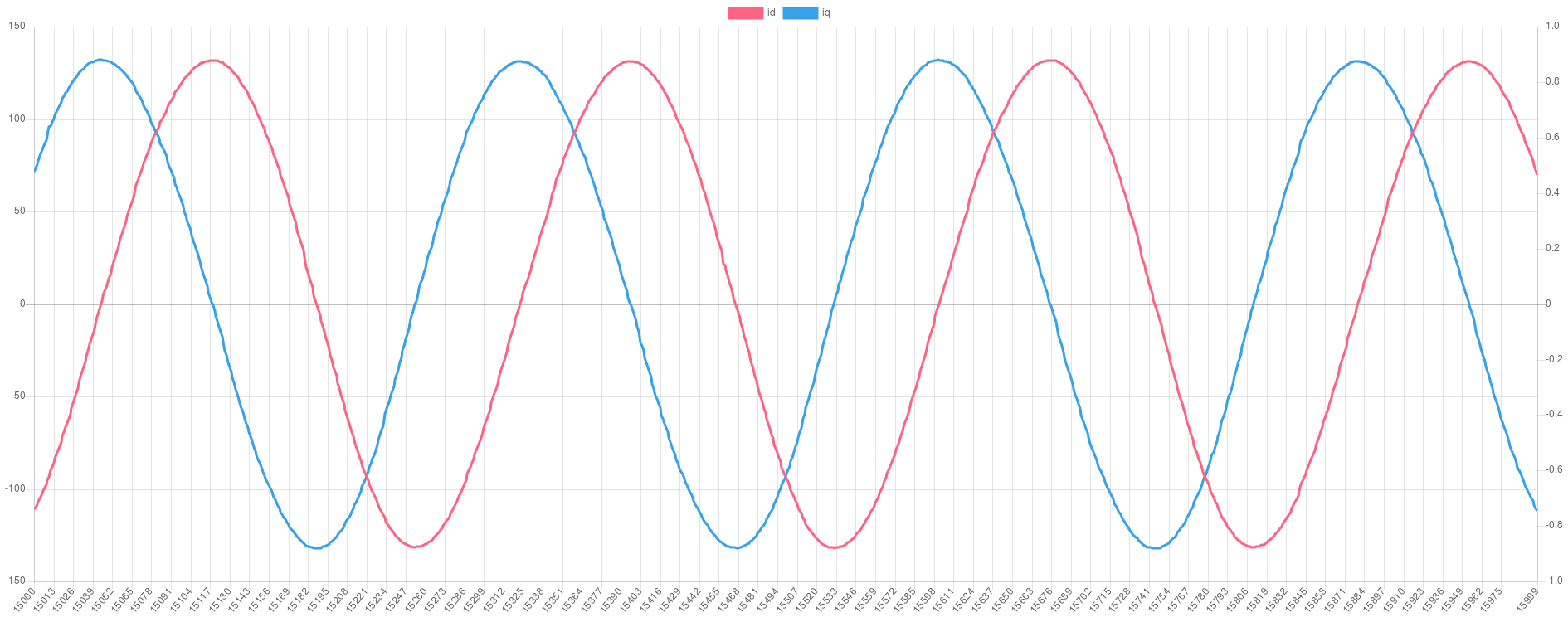 johu wrote: Mon Jun 03, 2019 9:28 am id regulation is still kind of weird. It works quite good when there is load on the motor but if I just want to spin it up in idle, id can quickly reach -70A even though I set it to 0.
