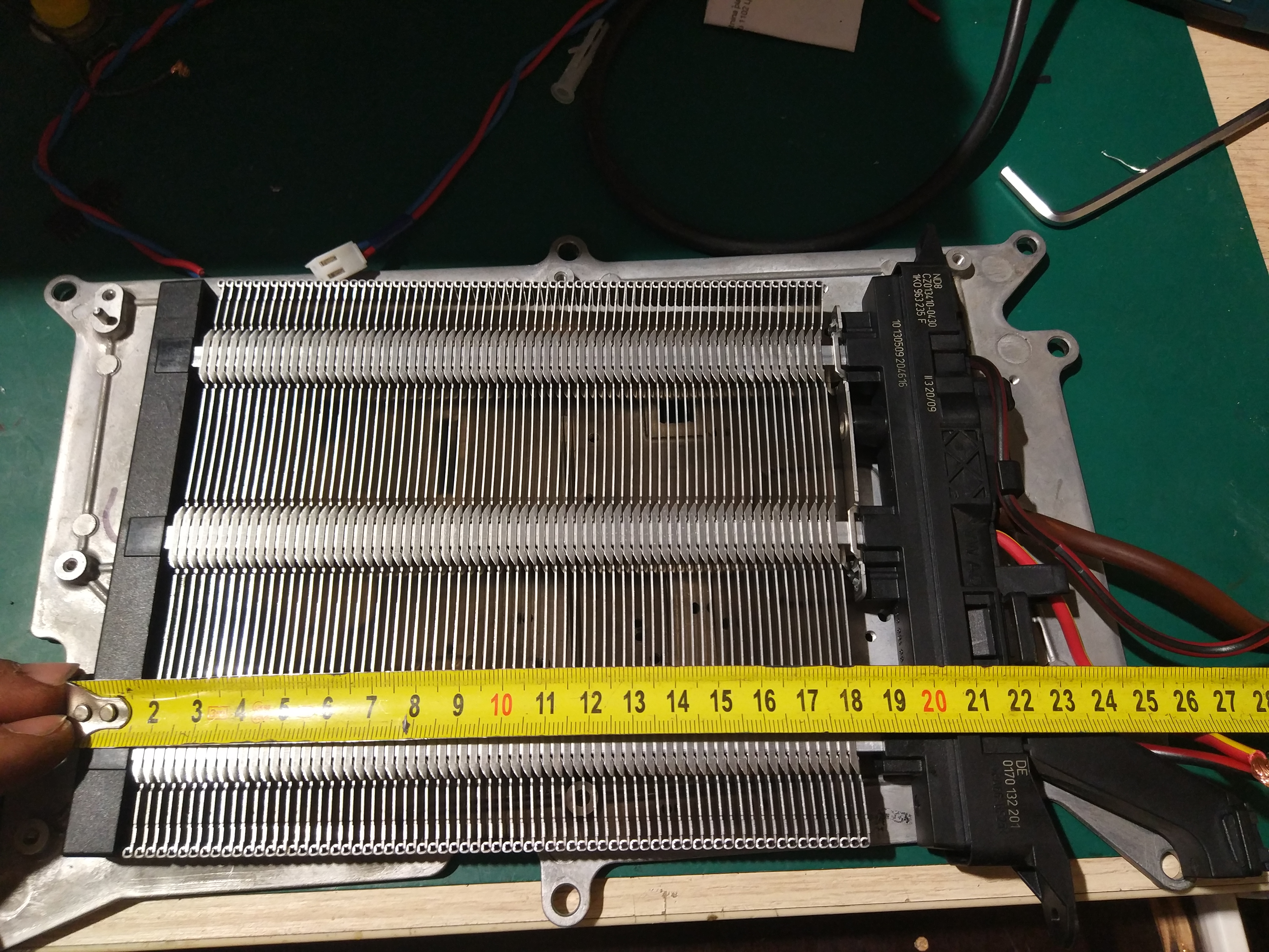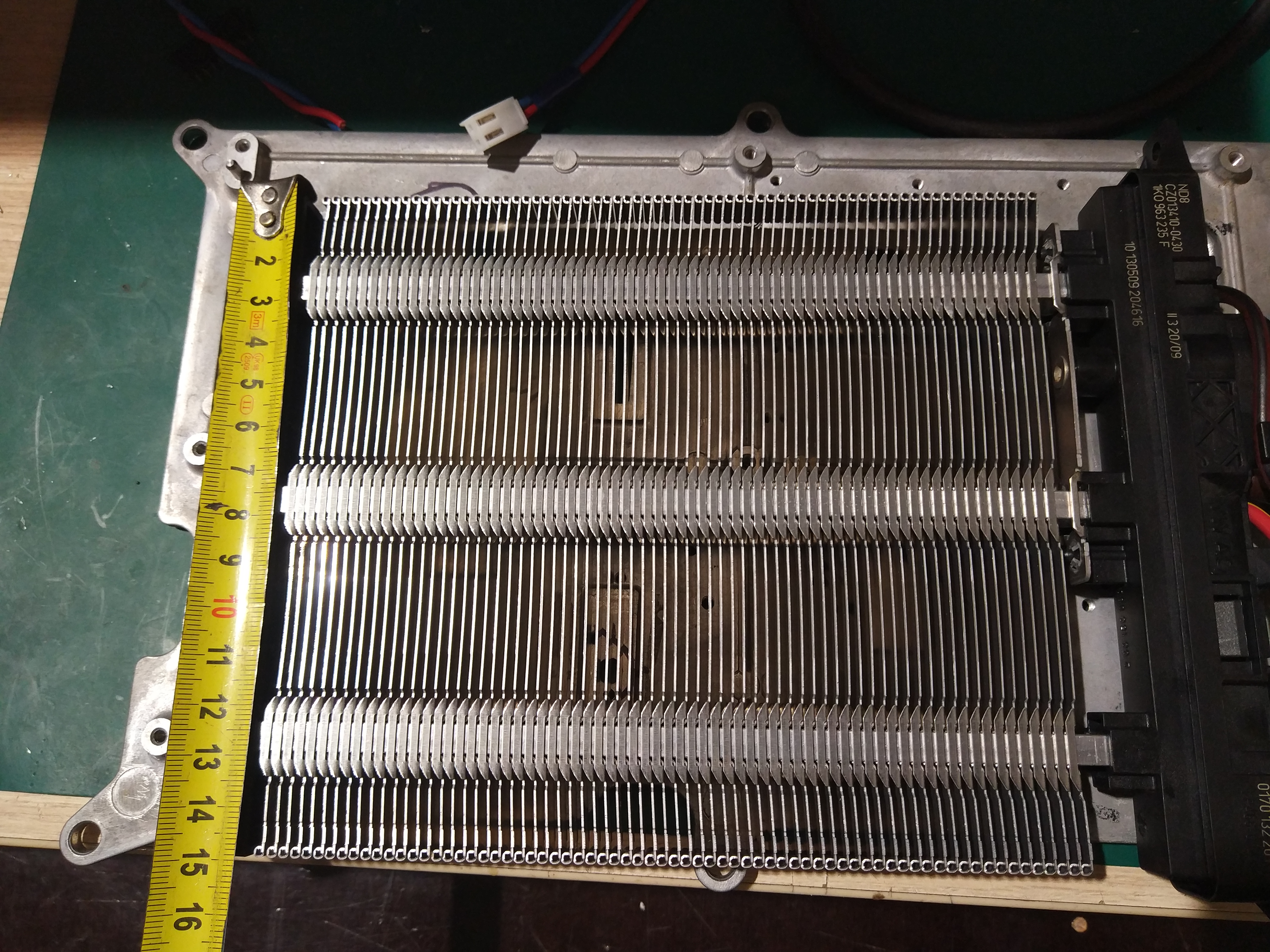 I bought something like this PTC heater core - https://www.aliexpress.com/item/32815414254.html