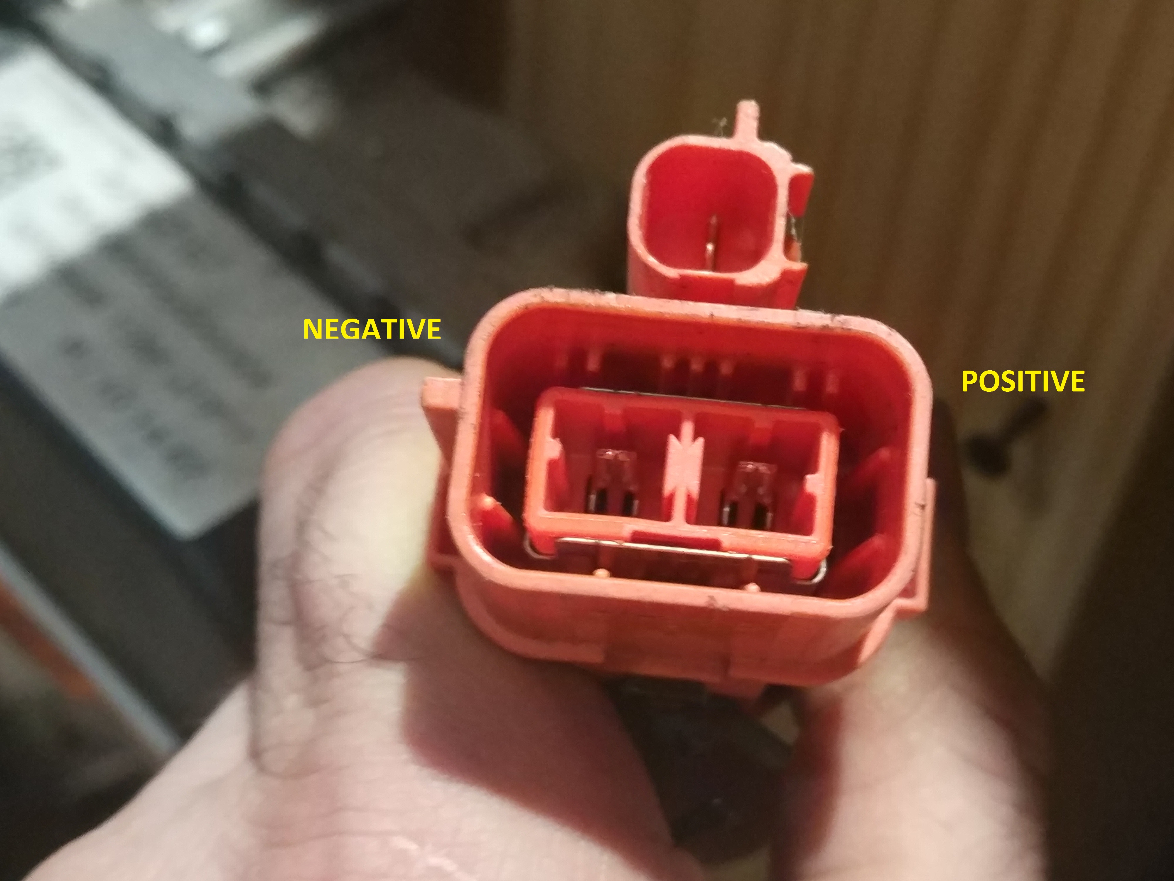 1. The contact on the connector side with the extrusion is NEGATIVE battery.