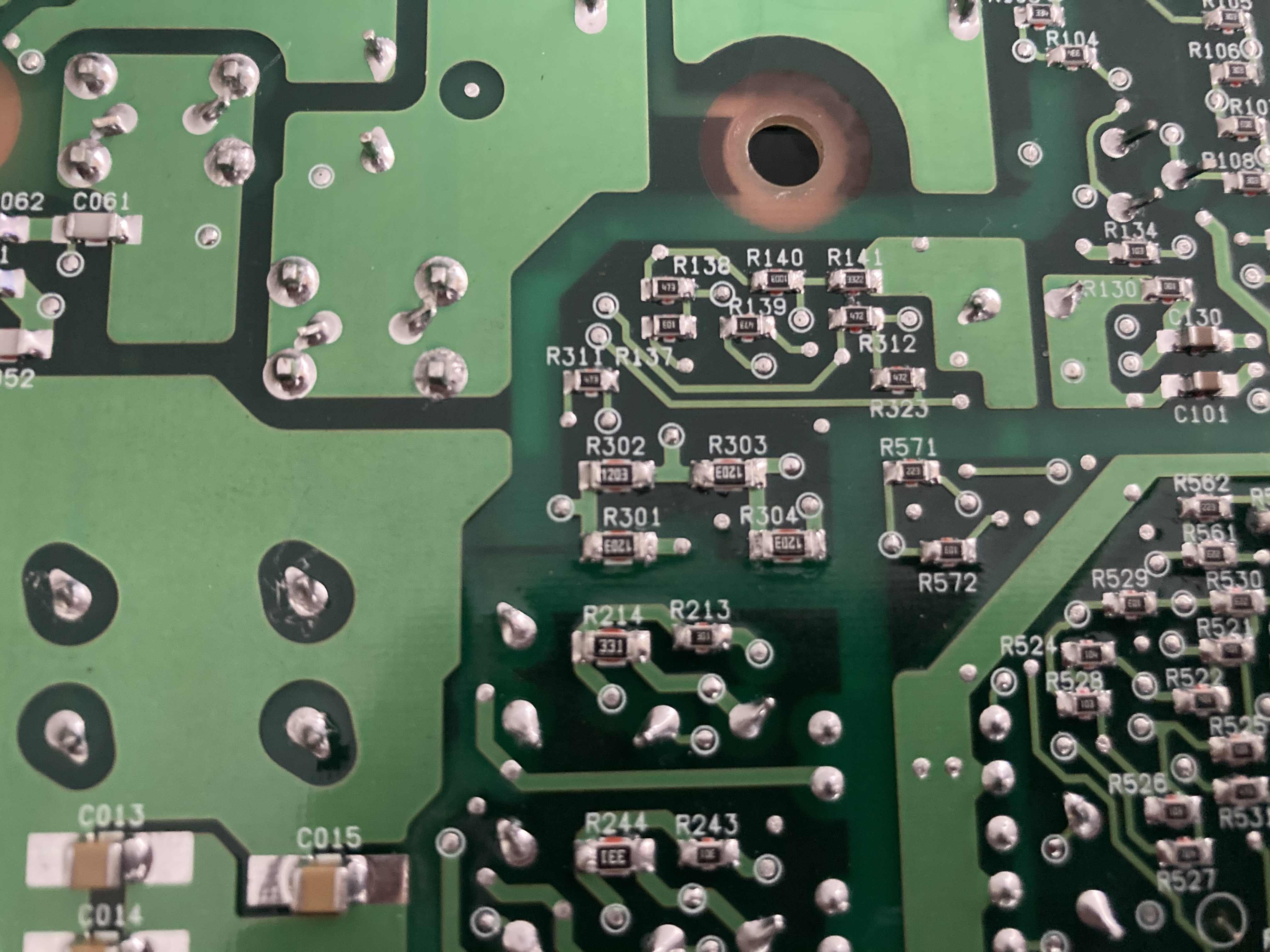 Also a second divider network here, 4 x120k (1203) on the bottom of the board (r301 r302 r303 r305) and 6.4K (approx code too small to read) on top (r305)