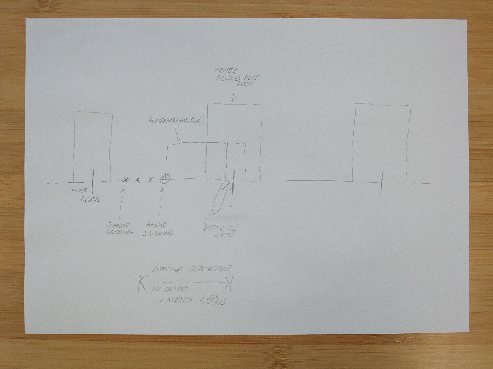 I'm not sure this is being simulated properly. Does the above mean that it's 1.5 periods from the measurement point to where the new dutycyles are loaded into the timers and take effect (0.5 before the ISR and then a full period from the ISR start till the timers load)? If so I think the simulator needs a one period extra delay before using the new duty cycles.