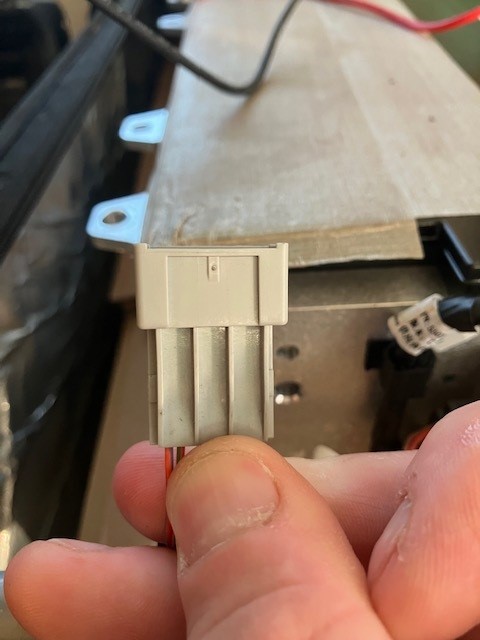 The MCU can handle 16 satellite BMS boards, for a maximum of 288 cells. I am 96 cells in 5 modules, so I only need to use one of the two provided IsoSPI ports. To test, I crimped open female tangs on each wire and tested: