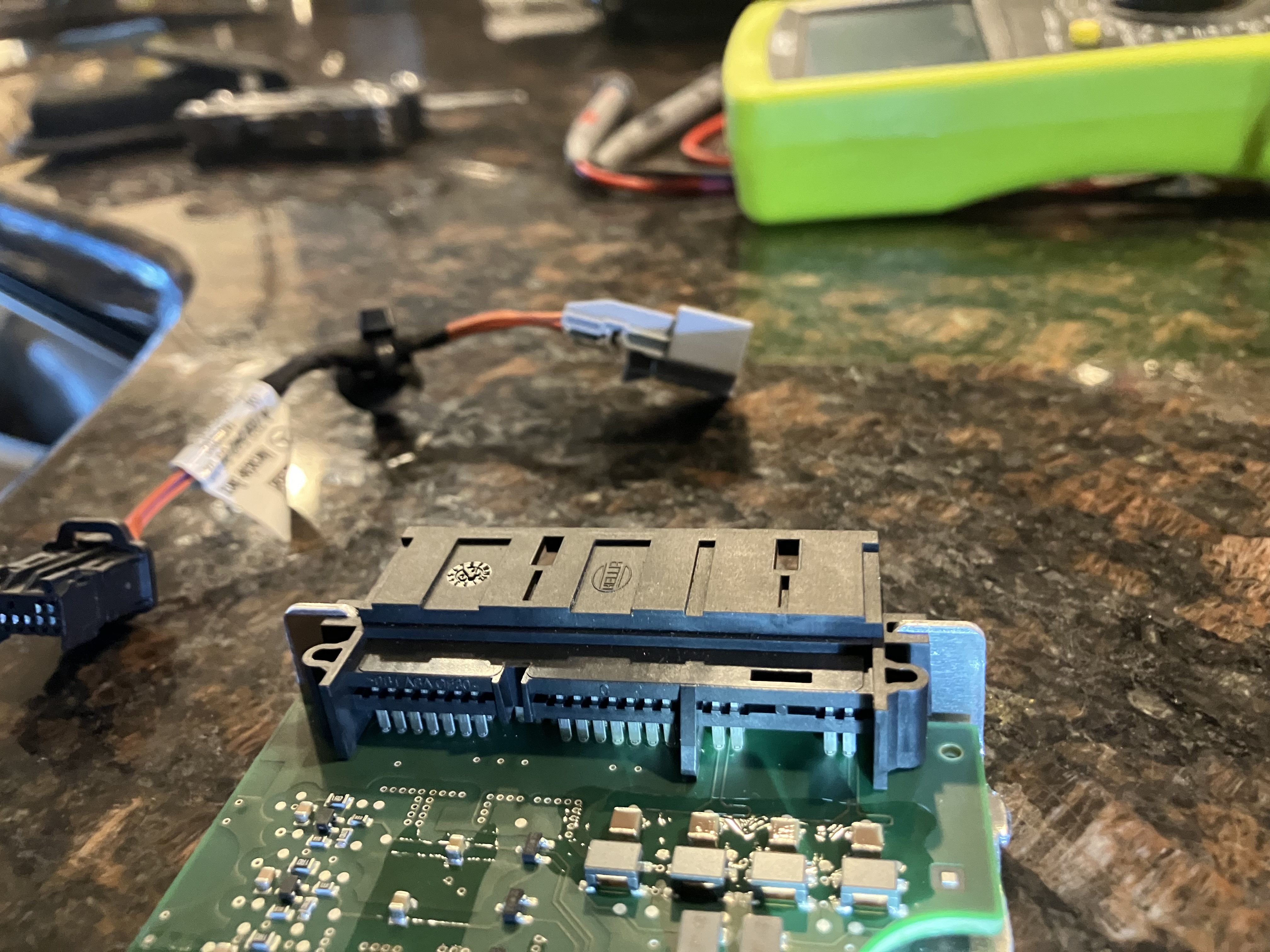I have tried researching these connectors and these BMS, and there is not much info out there. One German website inscrutably calls this a "control module". I also haven't had much luck decoding Mercedes wire colors. Although each wire is orange with a stripe, I would guess that orange/black is B-, orange/red is B+, and orange/green, orange/blue is the CAN signal? I don't want to fry anything by tinkering without more knowledge.