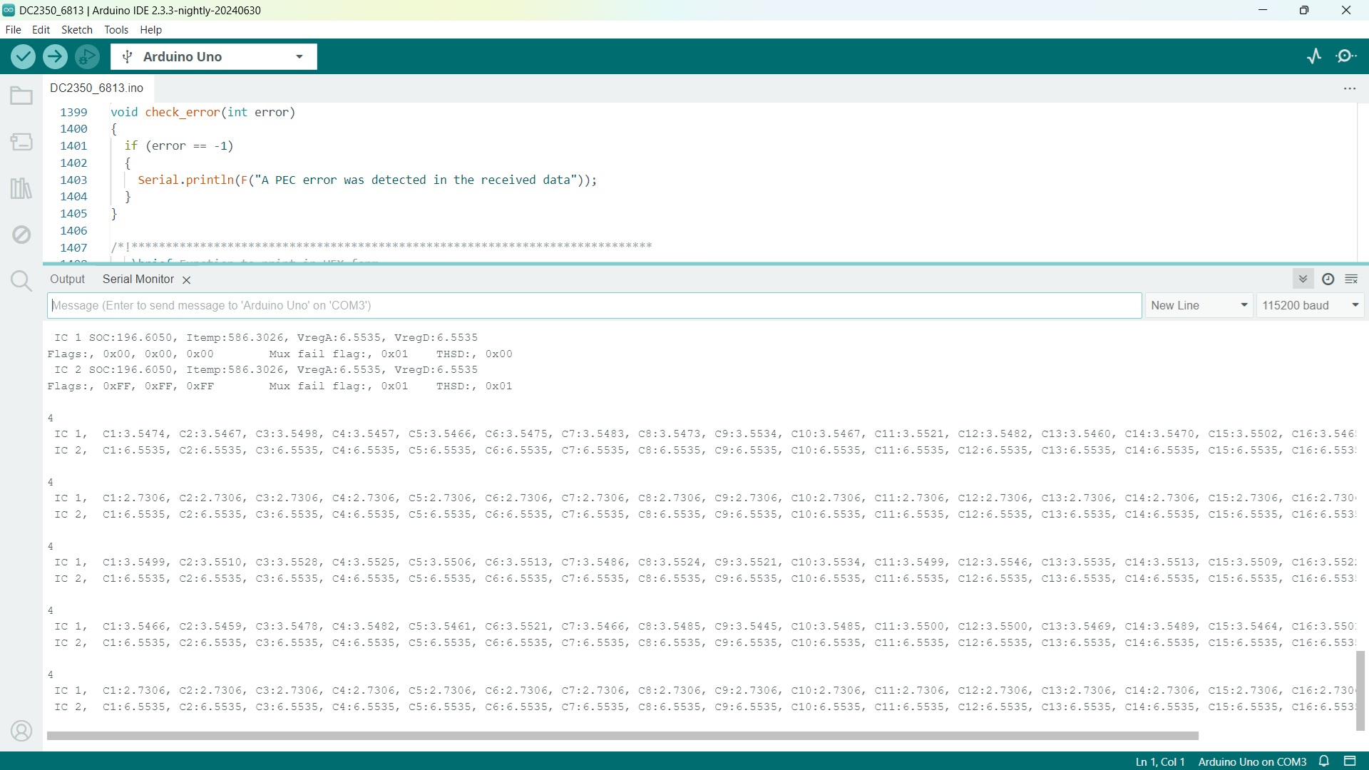 So I tried using an Arduino Uno to read the cell voltages directly. That doesn't work, without building a separate LTC6813 circuit for isoSPI to SPI conversion.