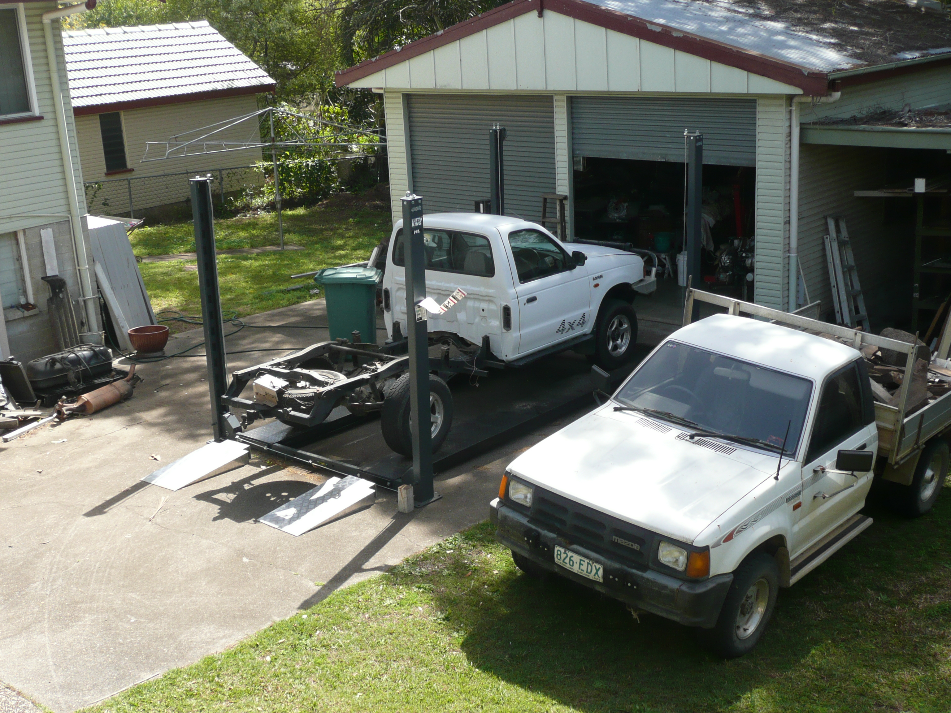 but it took the hoist and a couple of trolley jacks and about 6 heavy garden sleepers. If we did this again, we'll make a gantry crane, that will work over the hoist.