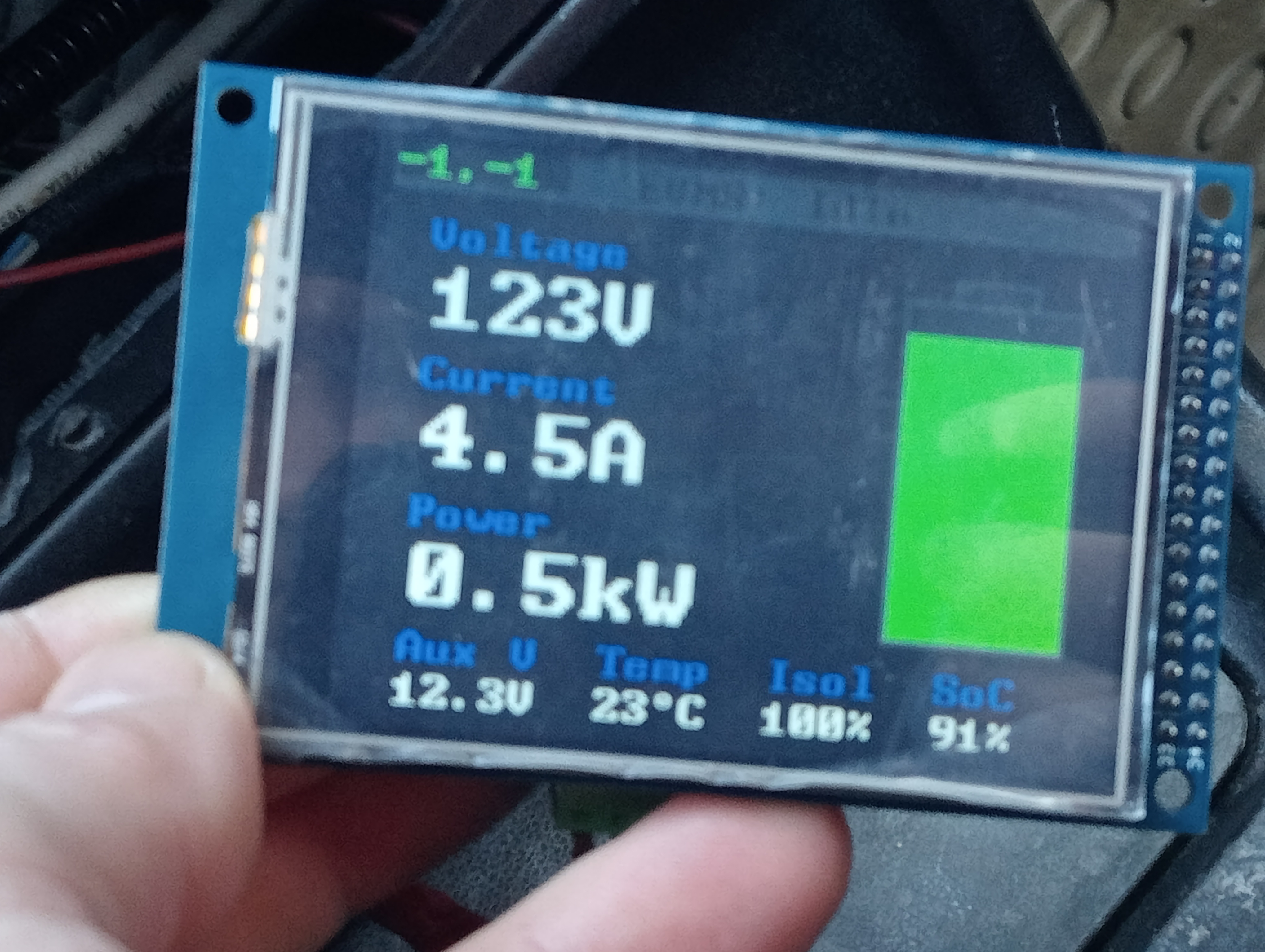 Also voltage reading is confused. While it reads battery values and makes the addition it also requires direct HV connection to main board. Later on i will make a secure fused connection for HV sensing.