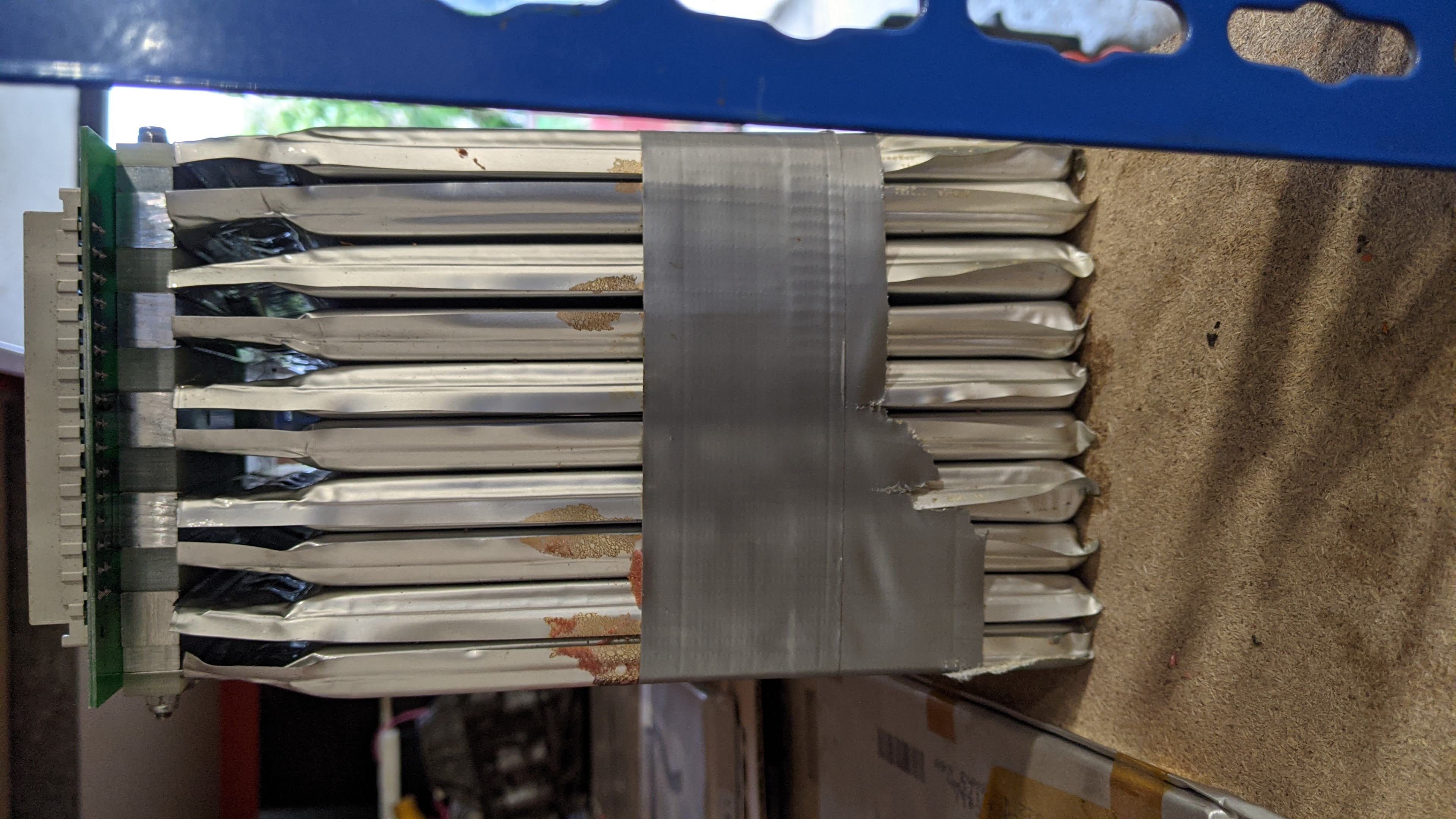 I am sorry but i have one more observation for you. More a limitation... I noticed that when one of my cells burst open along the seams it was the lowest one that was under the 16S stack of cells. I think they also dont like to be weighed too much. I am relating this because now i use cells in stack of 8S with plywood plate between them to spread the weight evenly among 3 stack of 8S cells and their 8S top neighbour. I wasnt able to design any different method of flooring/shelf between the stacks so i hope they will be OK.