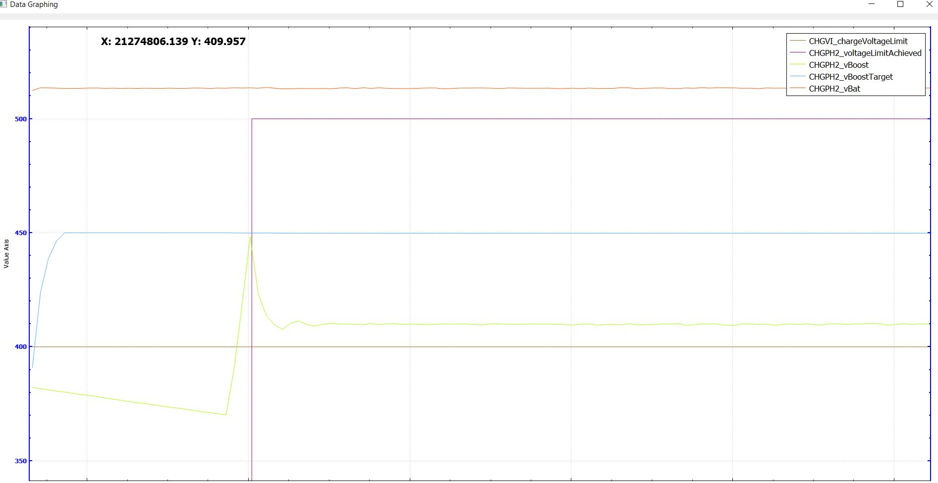 Also the charger jumps into a state and stays there, right after startup, you would expect something a bit more of a stair case like.