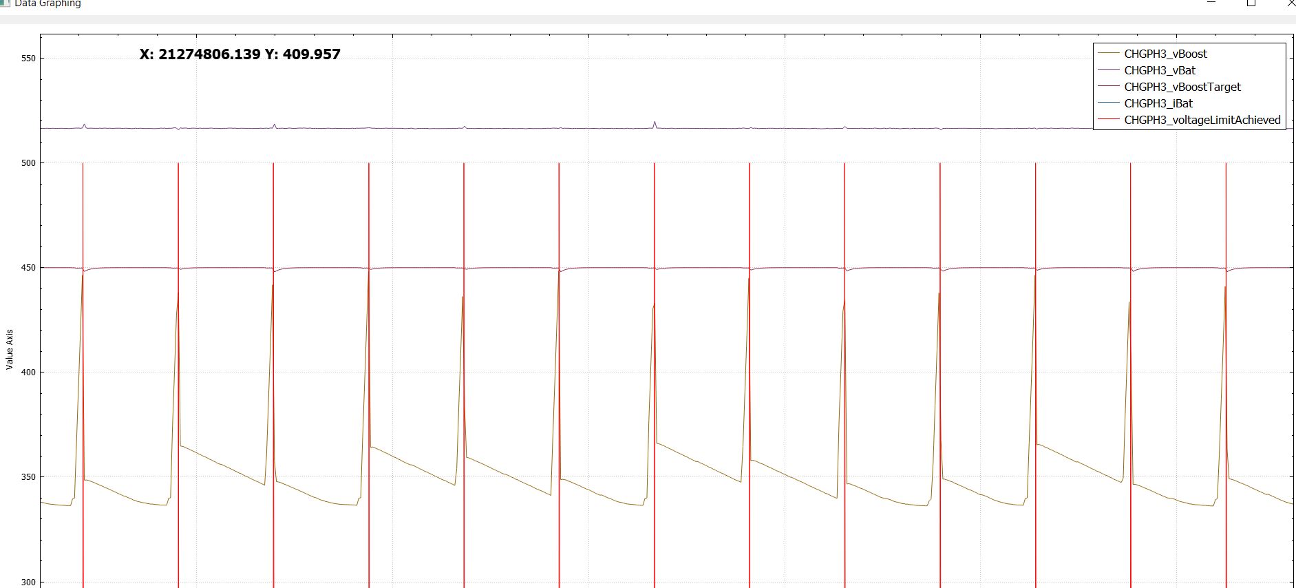 You can see the Vbatt is un scaled. However you can see the VboostTarget at 450V, which I believe is a firmware limit.
