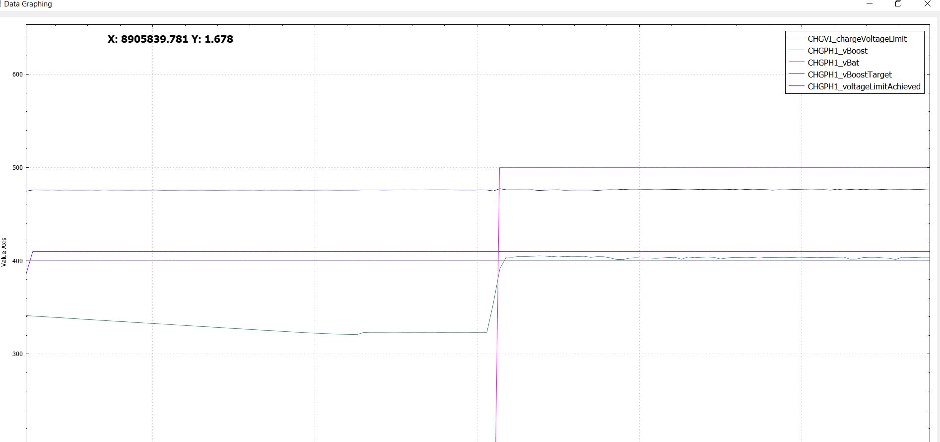 The other charger unit (1014963-00-L) running the same board, doesn't have the voltage offset issue, but for some reason it is not triggering the EVSE to kick on, and it goes into a EN = 0, FLT = 1 condition after a few seconds, might be because the incoming power never switches on.