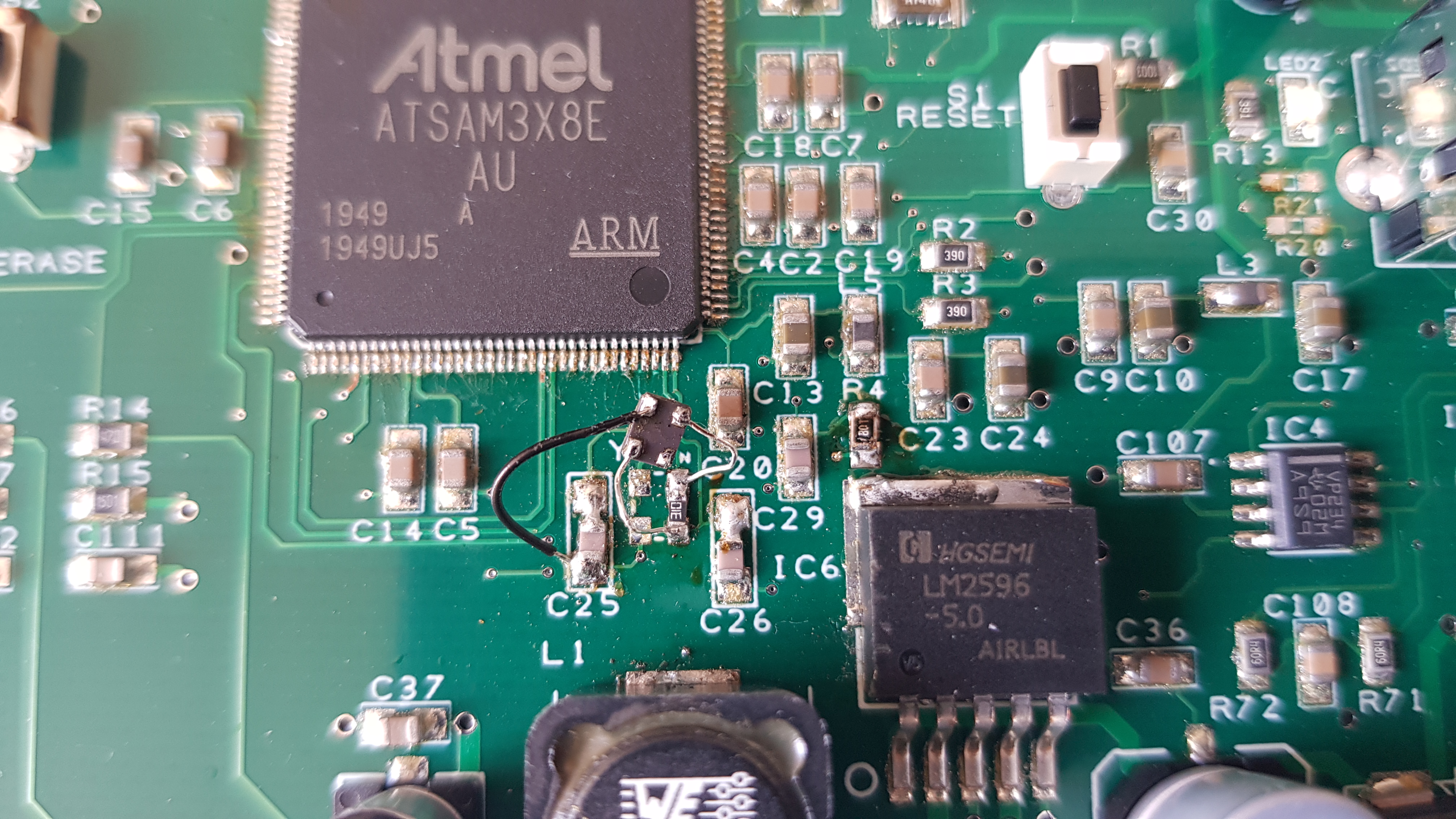 Also, you'd want to check for continuity between the usb port and the pin of the ATSAM, to test if you did a good a good job soldering.