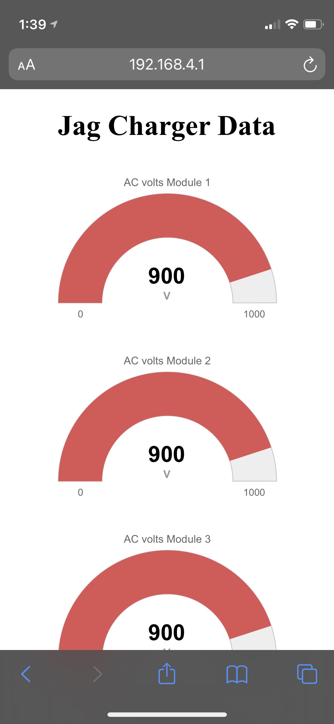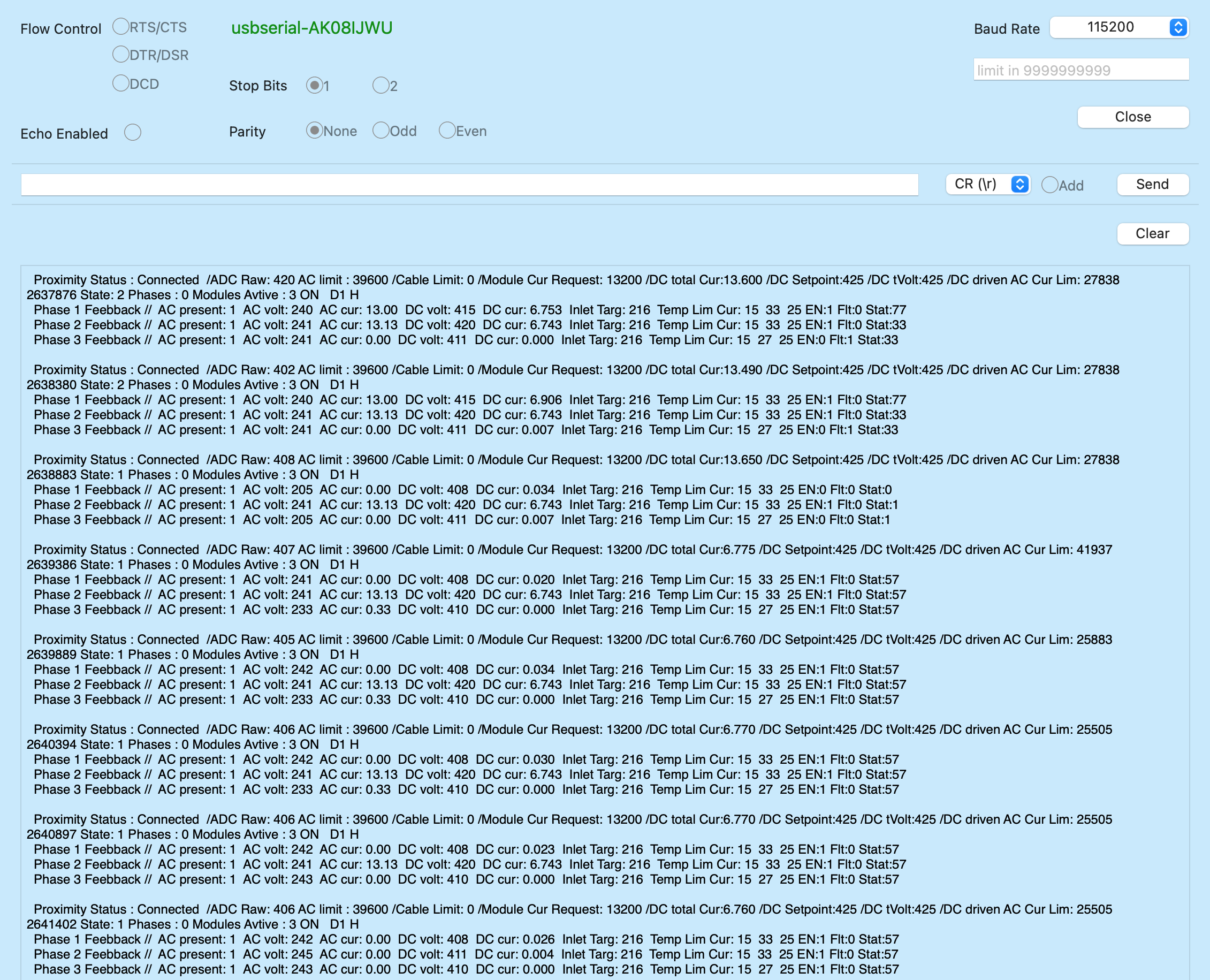 1) All values still display 900 on the wifi screen, I wasn't ever able to see anything different after several tries, power cycles, and a total charge logged of ~35kWh (read: it was actually charging) 2) During the charge taper period (I believe), phases of the charger keep cycling on/off, sometimes with all three cycling off. I observed a little bit of this during the nominal charge period, but it really went wild during what looks like the taper period. I can hear the relays clicking, see it in my EVSE log, and see it in the charger serial log with associated weirdness in the AC/DC data. Has anyone else observed this behavior before I start the debugging process? I'd like to solve this before introducing the Simp Charge as another variable and hope that it's not simply due to the higher voltage I'm running, as it was happening intermittently at lower voltage.