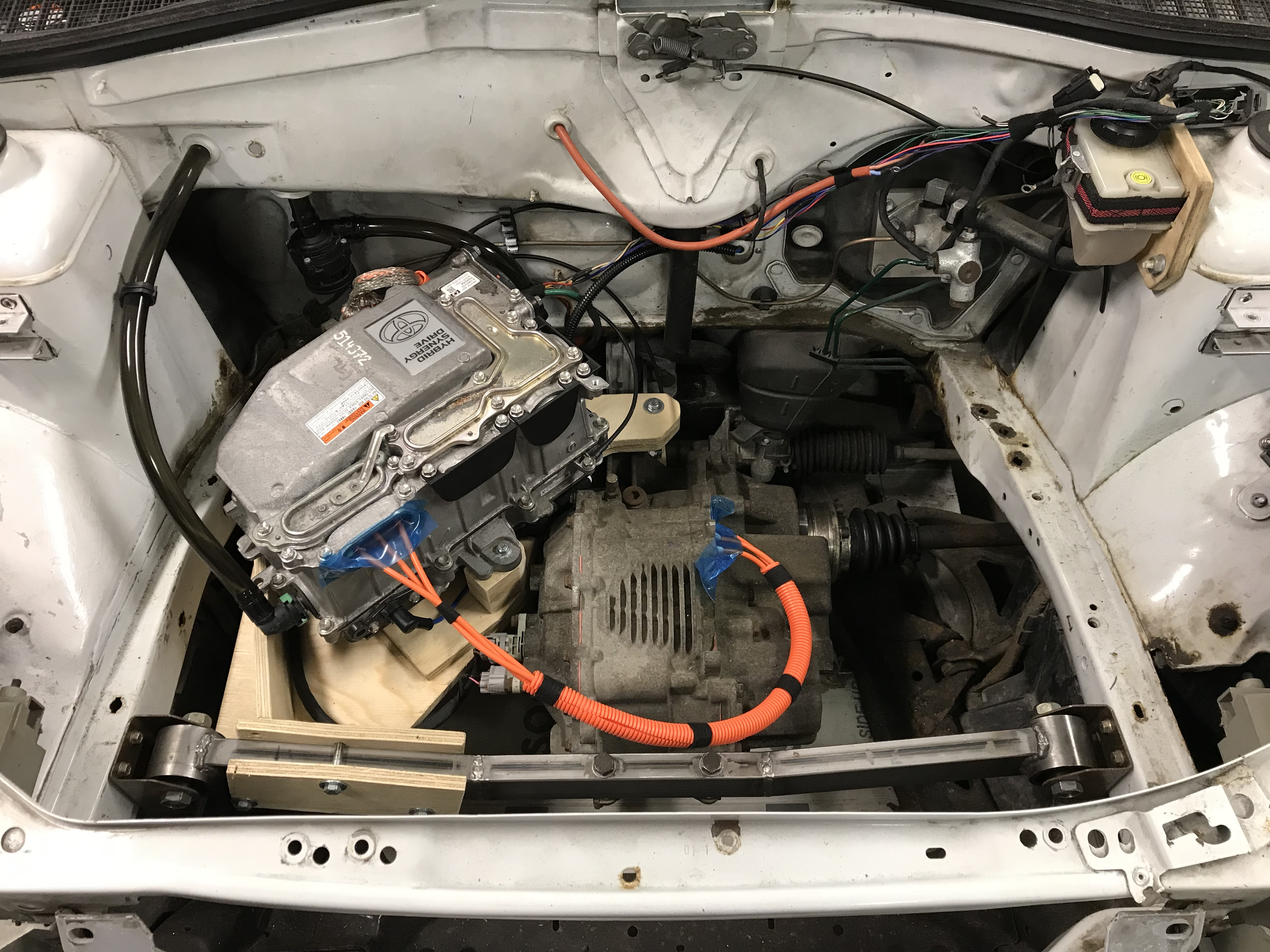 Everything ready for test. Have moved the car with its own power in the garage. Unfortunately it is raining outside and the road is wet so I will wait for better weather as my HV wiring is far from watertight. Hopefully road test tomorrow.