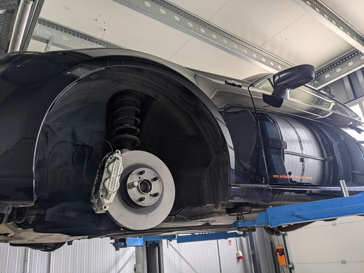 I upgraded the brakes to a 4 pot caliper - non relatet EV-Stuff