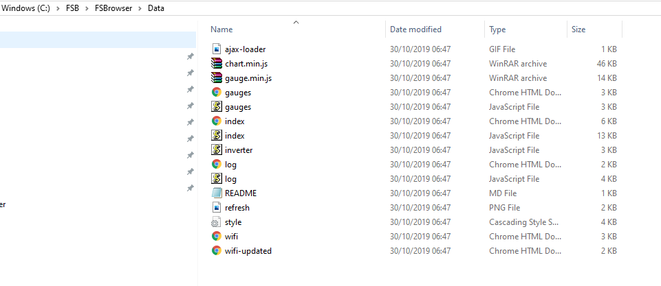 mkspiffs.exe -c C:\FSB\FSBrowser\Data\ -b 8192 -p 256 -s 600000 flash-spiffs.binCode: Select all