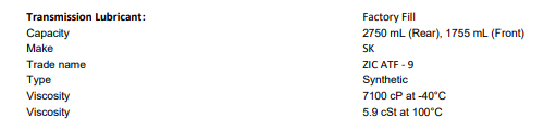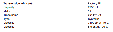 Edit 3: SK ZIC Oil don't list the product but some of the DEXRON VI parameters look close (here)