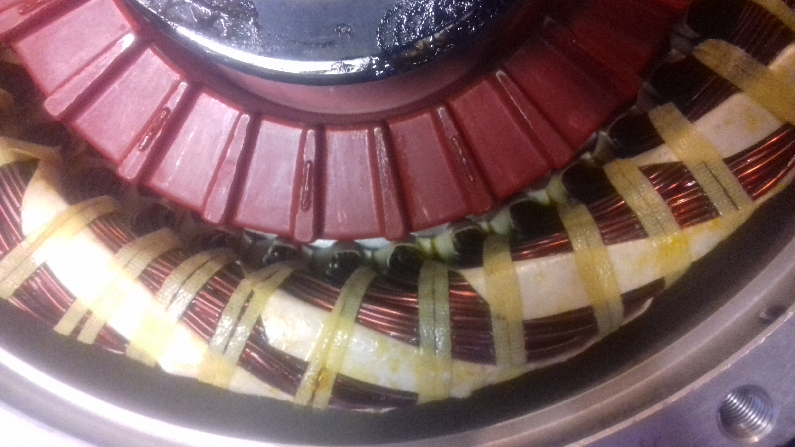 Since I have a spare motor and inverter, I took a look inside. No different to what I recall seeing inside 3 phase induction motors, but it was a long time ago and I am no motor expert. Looks like quality kit to me. Not got the rotor or phase connection end out yet tho and i wonder whether the motor is connected in star or delta? Anything else I should look at inside? - edit: looks like a Delta connection as the only terminals are the 3 that connect to the inverter directly. Makes sense to me, I guess that's the same for all 3 phase EV motors?
