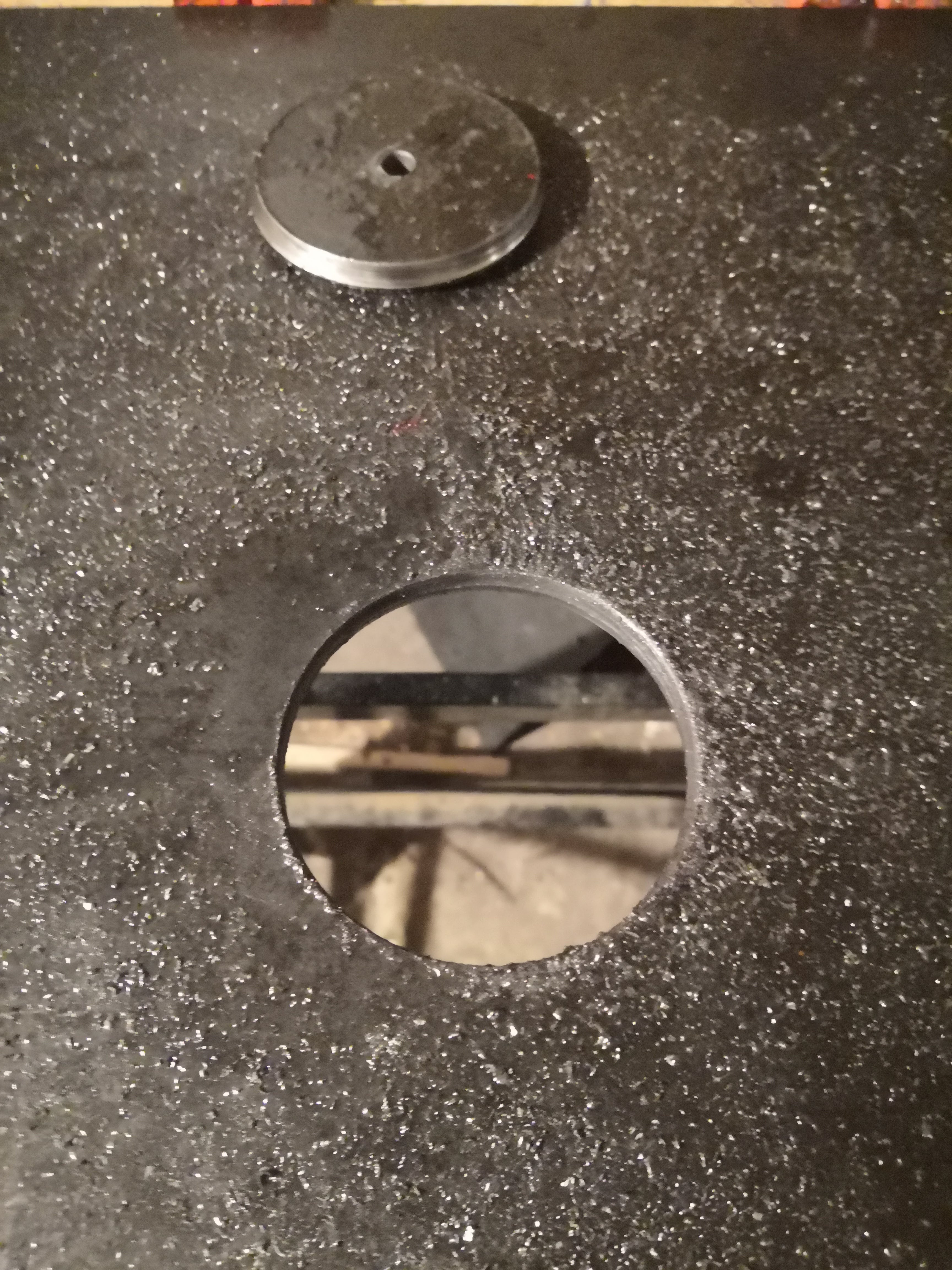 The two circles I drilled out of the 8mm plate will form the base of the final two struts. Just need to mock up the struts themselves now to get the angles right. More cardboard engineering.