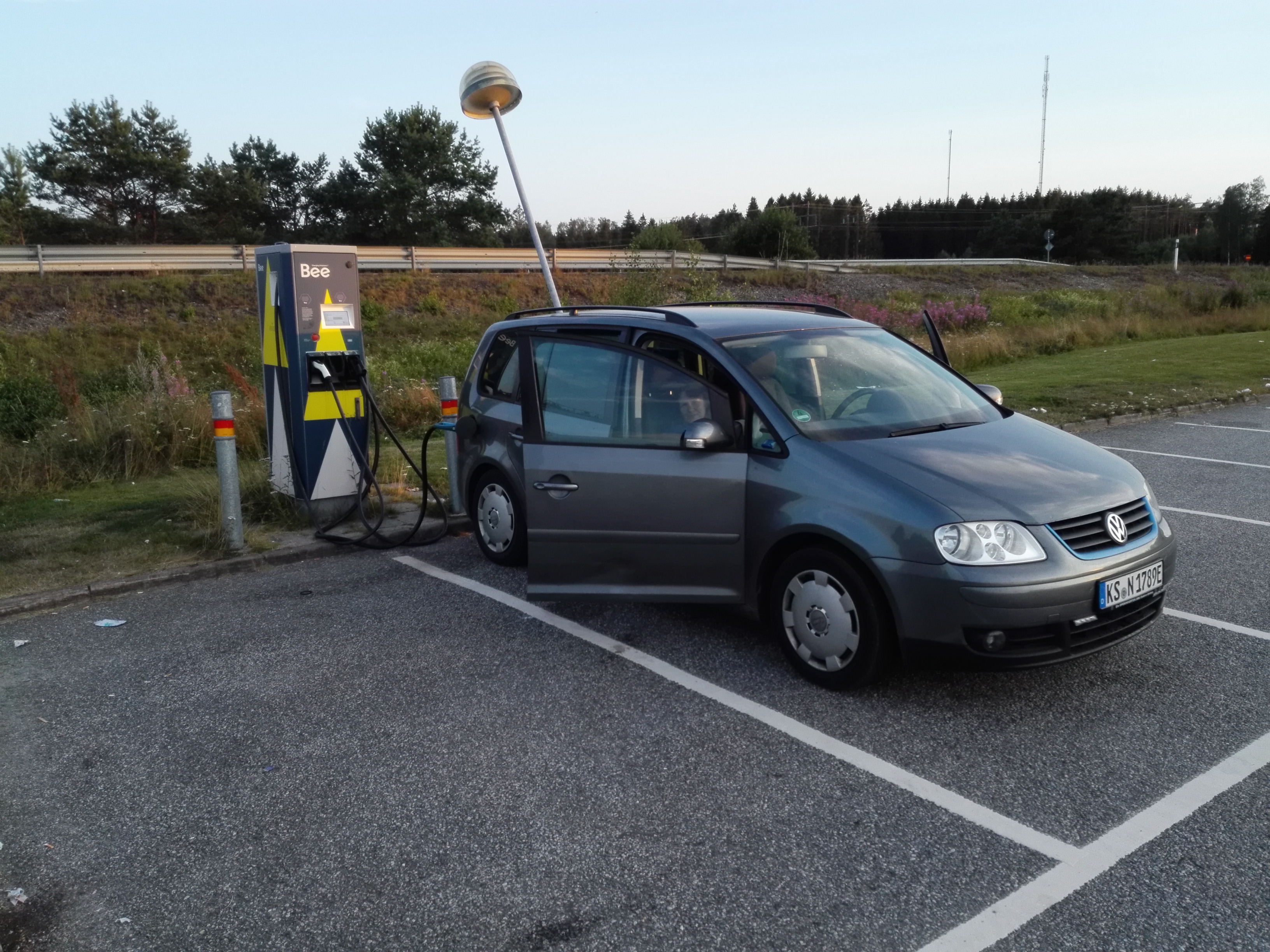 Tanumshede again: the charger wouldn't start, "Problem i laddaren" (problem in charger). Fortunately there was a paid charger nearby that worked