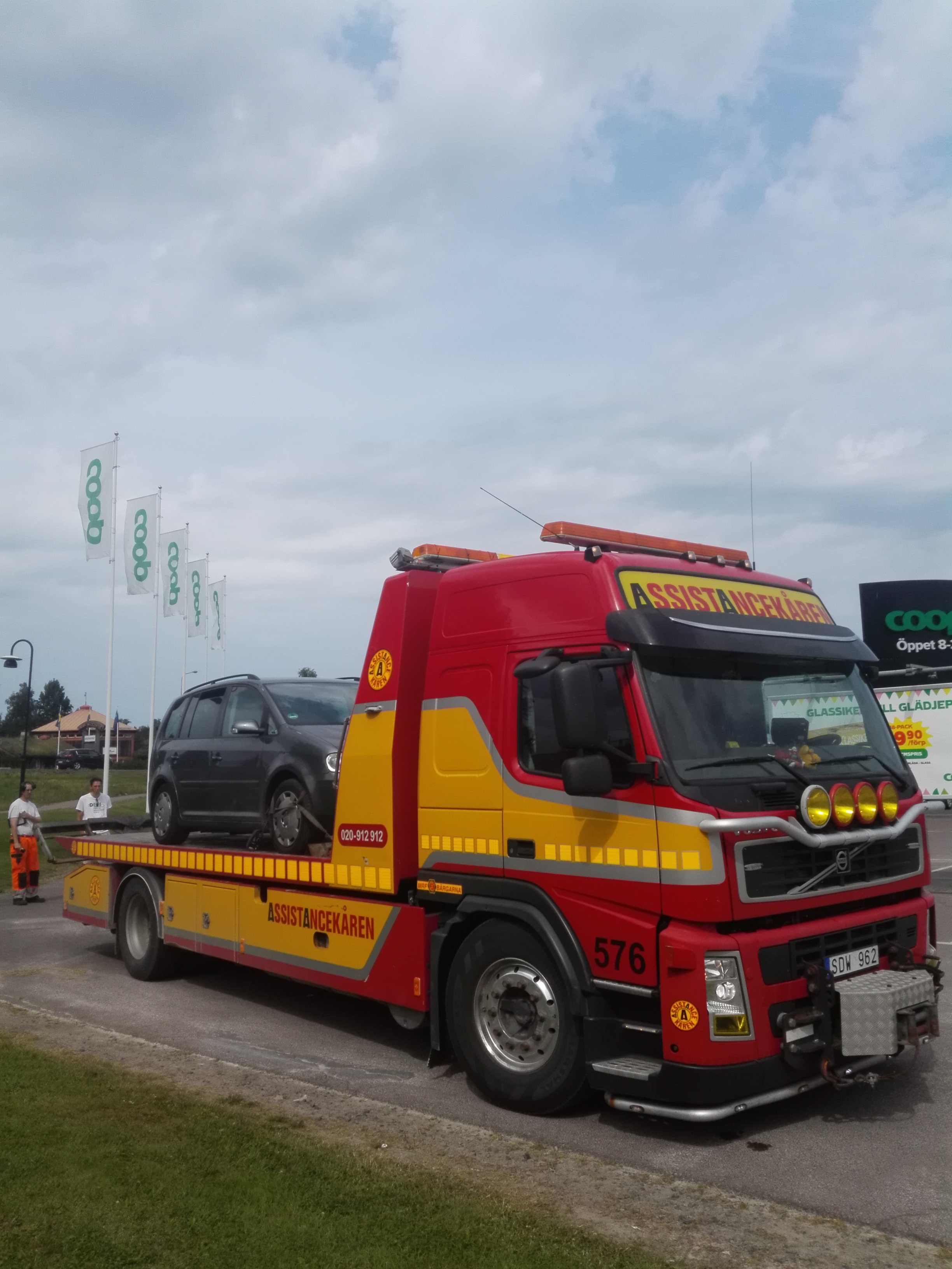 Torsby: the charger is broken. So I called Fortum who just said "yes we know it's broken, there is nothing we can do". Next charger 30 km in the wrong direction in Sunne. We end up having to put a perfectly working car on the tow truck. Which brings us to..
