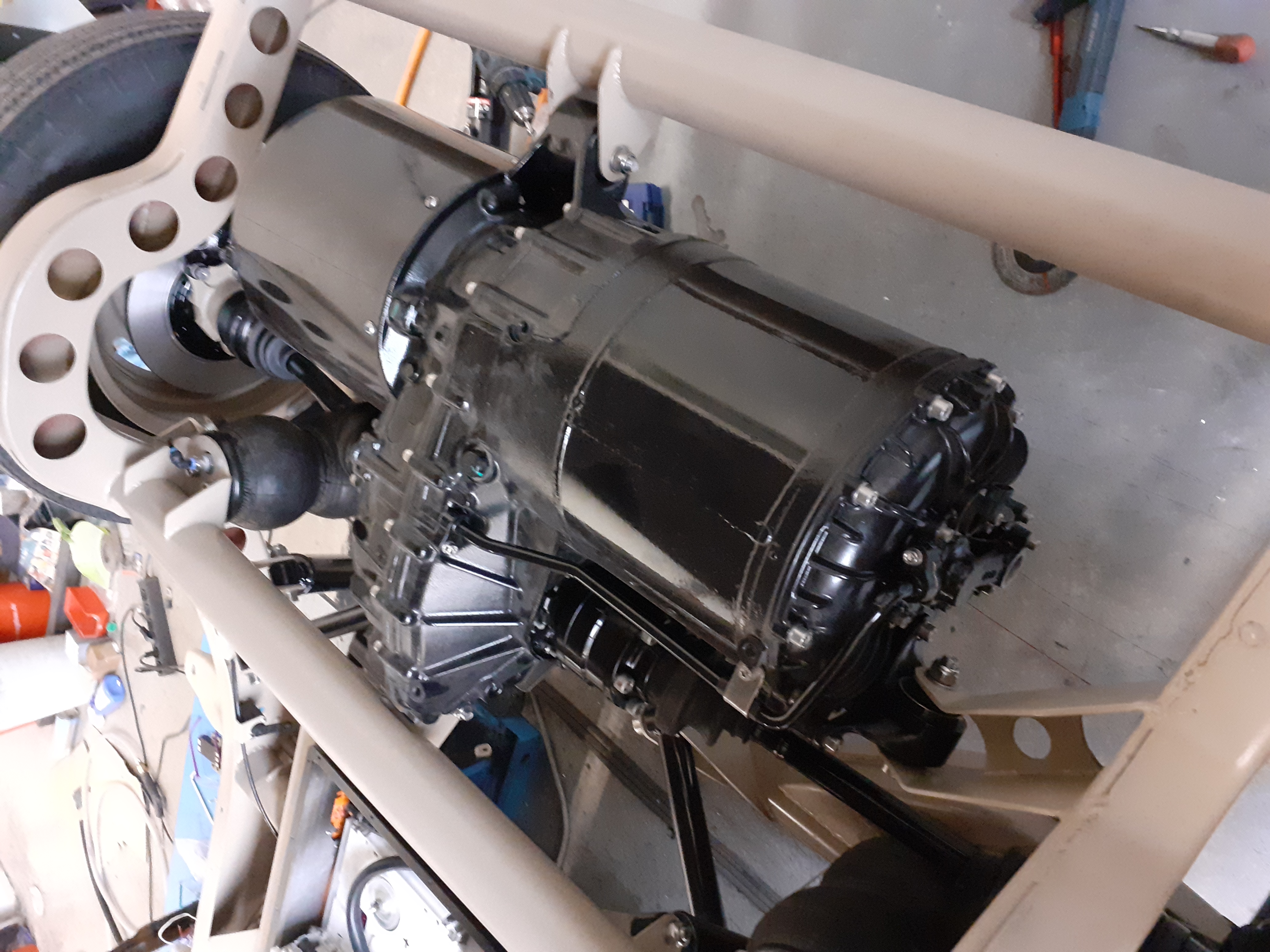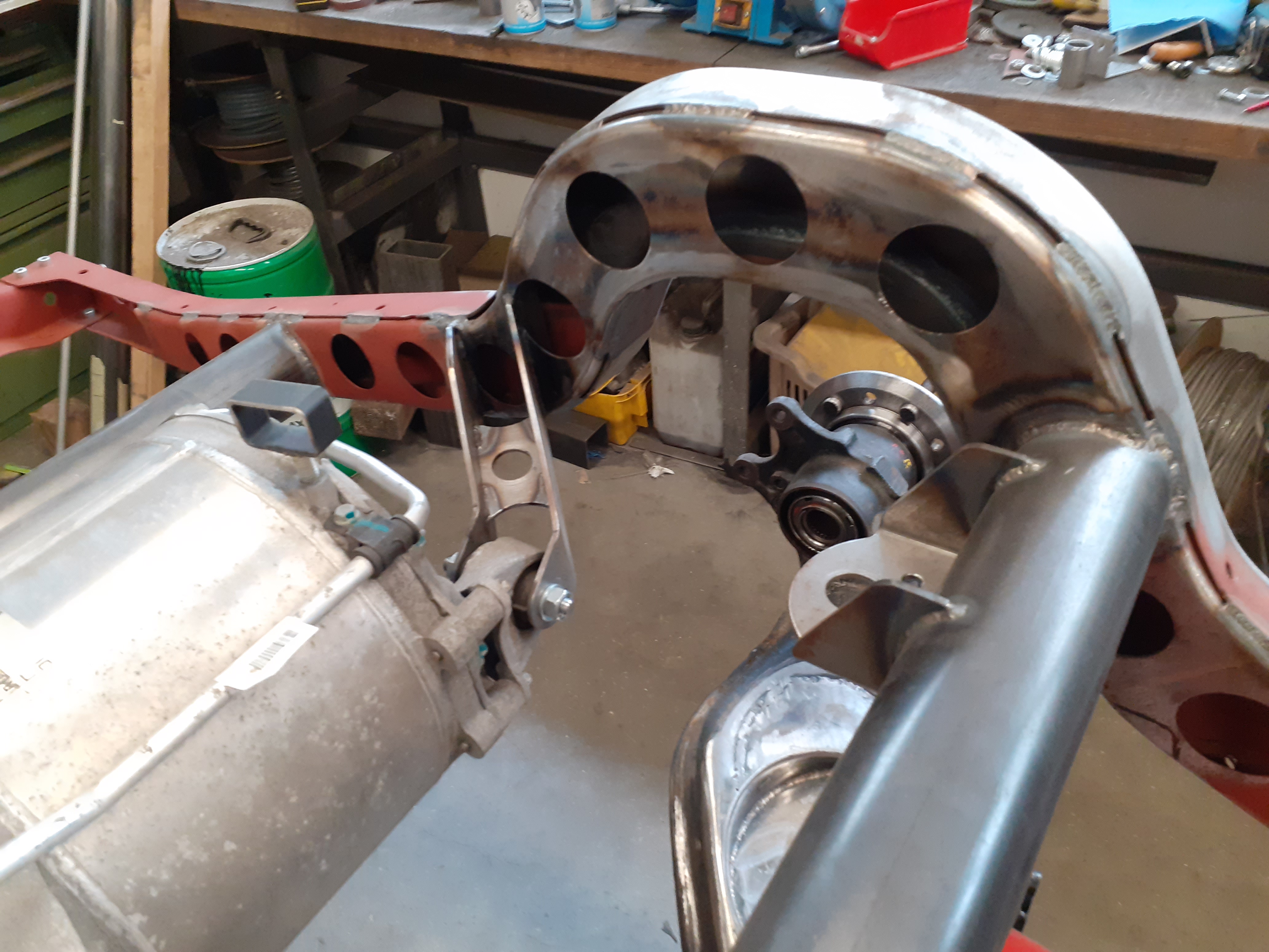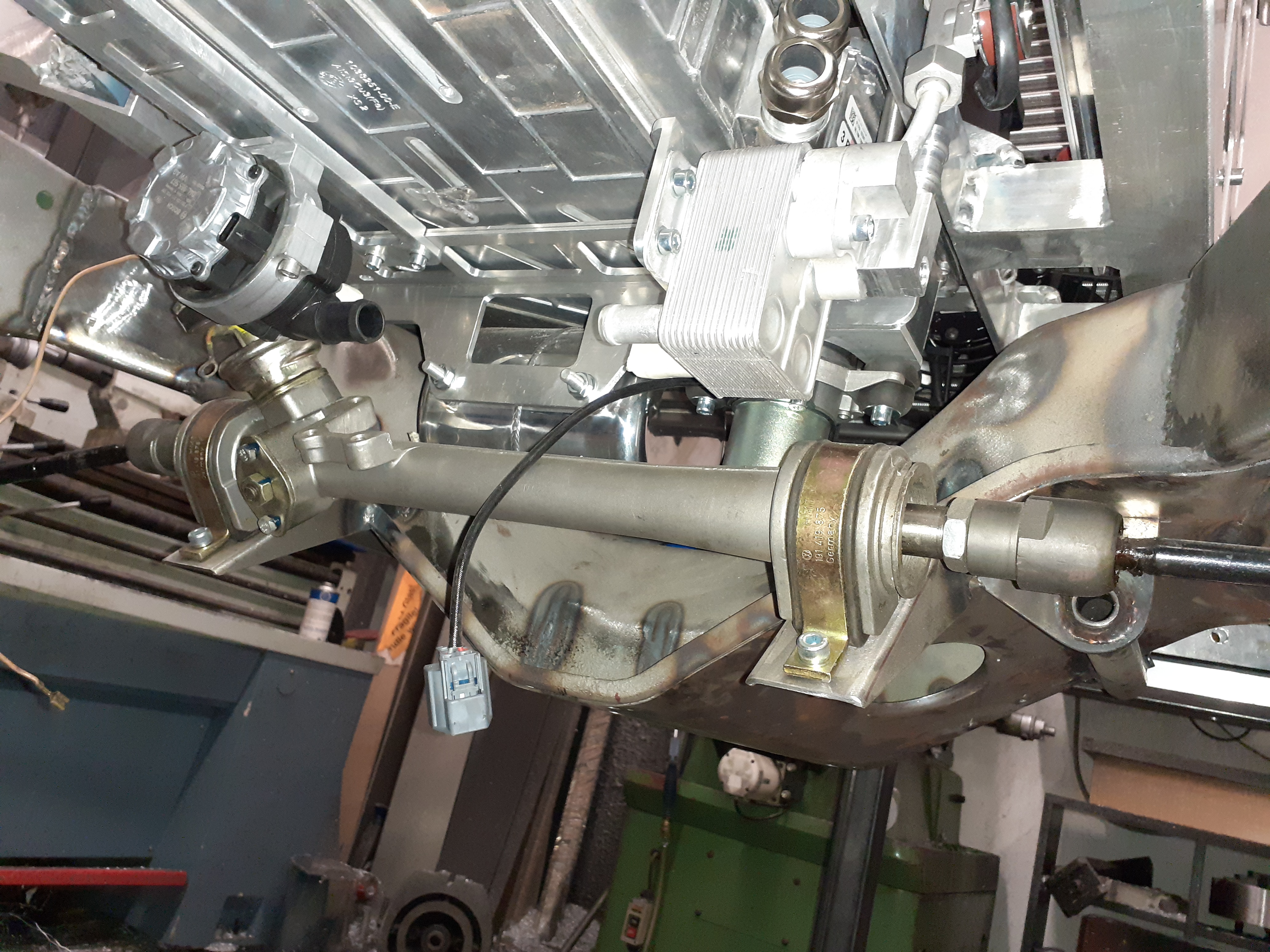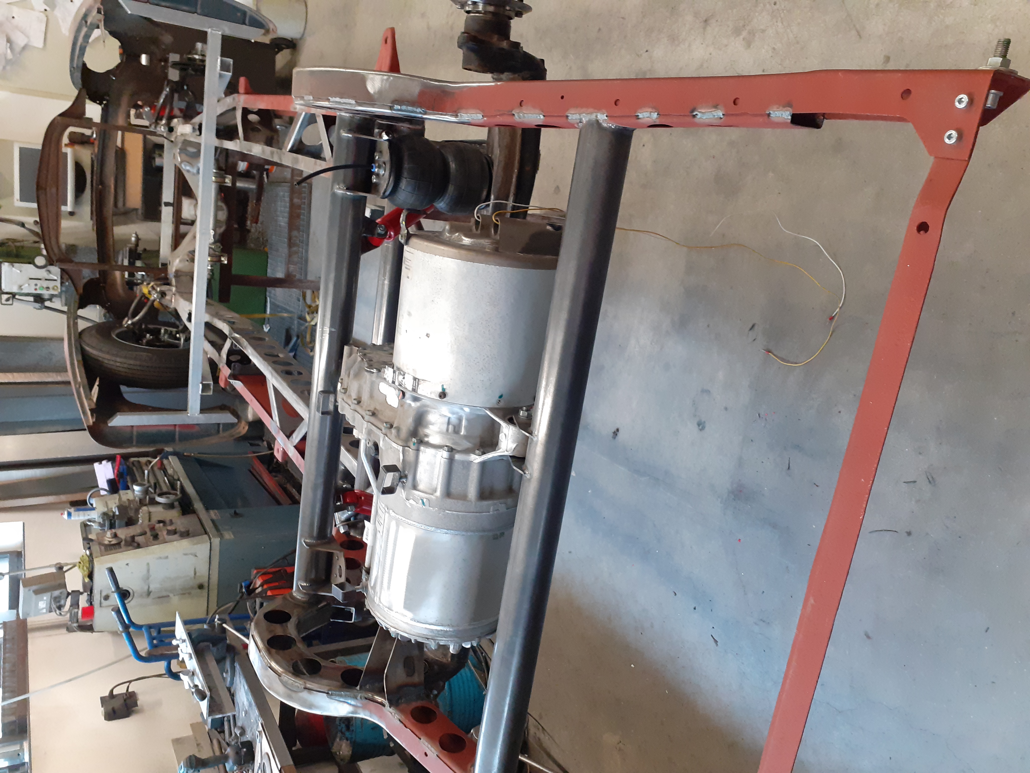 Nice!muehlpower wrote: ↑Mon Aug 31, 2020 8:09 pm The rear axle is a de dion axle made of a thick tube and mercedes IRS. Controlled by a triangulated four link. I think this is the easiest replacement for a solid axle to fit a tesla unit. I will use everything from Mercedes. Bearings, brake discs, calipers, parking brakes and drive shafts. Cheap and easy to get. And the best thing is that Zero EV sells matching drive shaft stubs for the Mercedes shafts.