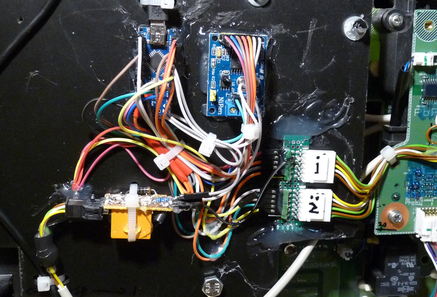 I think a modboard could suit the PDM quite well. In these two photos are the connections that I used to make it work. This is for DC-DC operation and AC charging. No CHAdeMO. Some traces to the main MCU have been cut, I can't remember which ones, but I'm sure I2C at least.