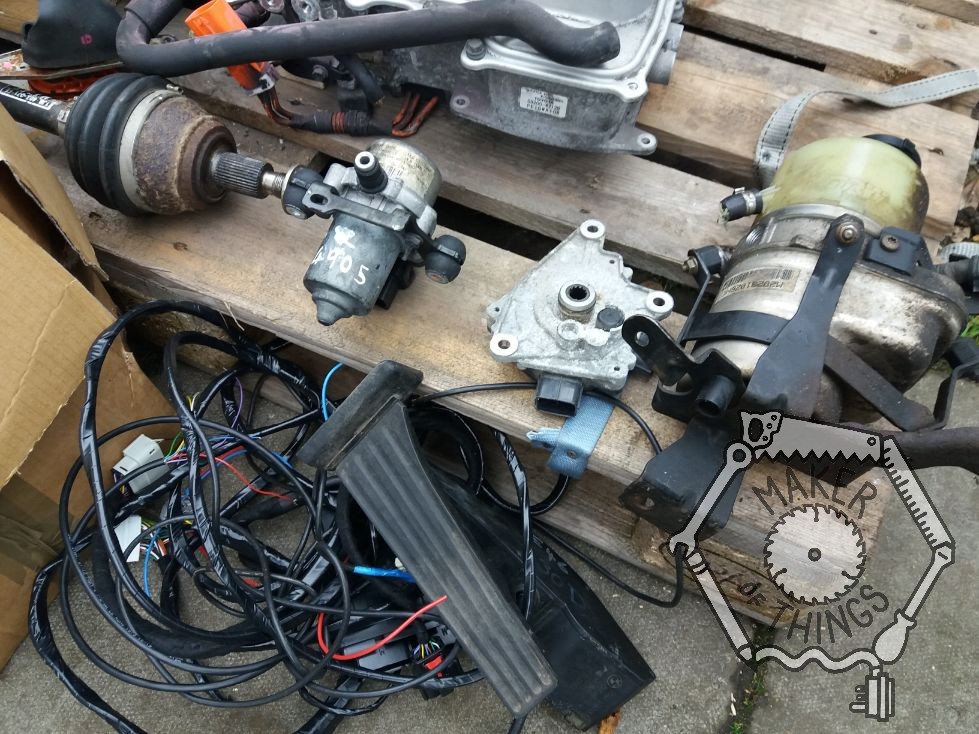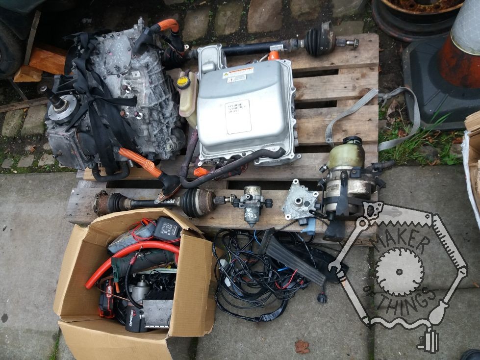 Looks like it all made it:) Hope the random stuff is some use. Seemed a shame to dump. You will need to torque down the bolts in the transaxle case before use. The vcu and loom should be plug and go. There is also a powerwatcher kit in there :