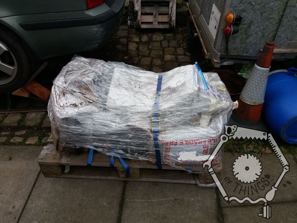 At 17:00 I phoned the company and found that the pallet arrived at their central depot this morning, and just hadn't been sent out to their Manchester depot for local delivery! :x