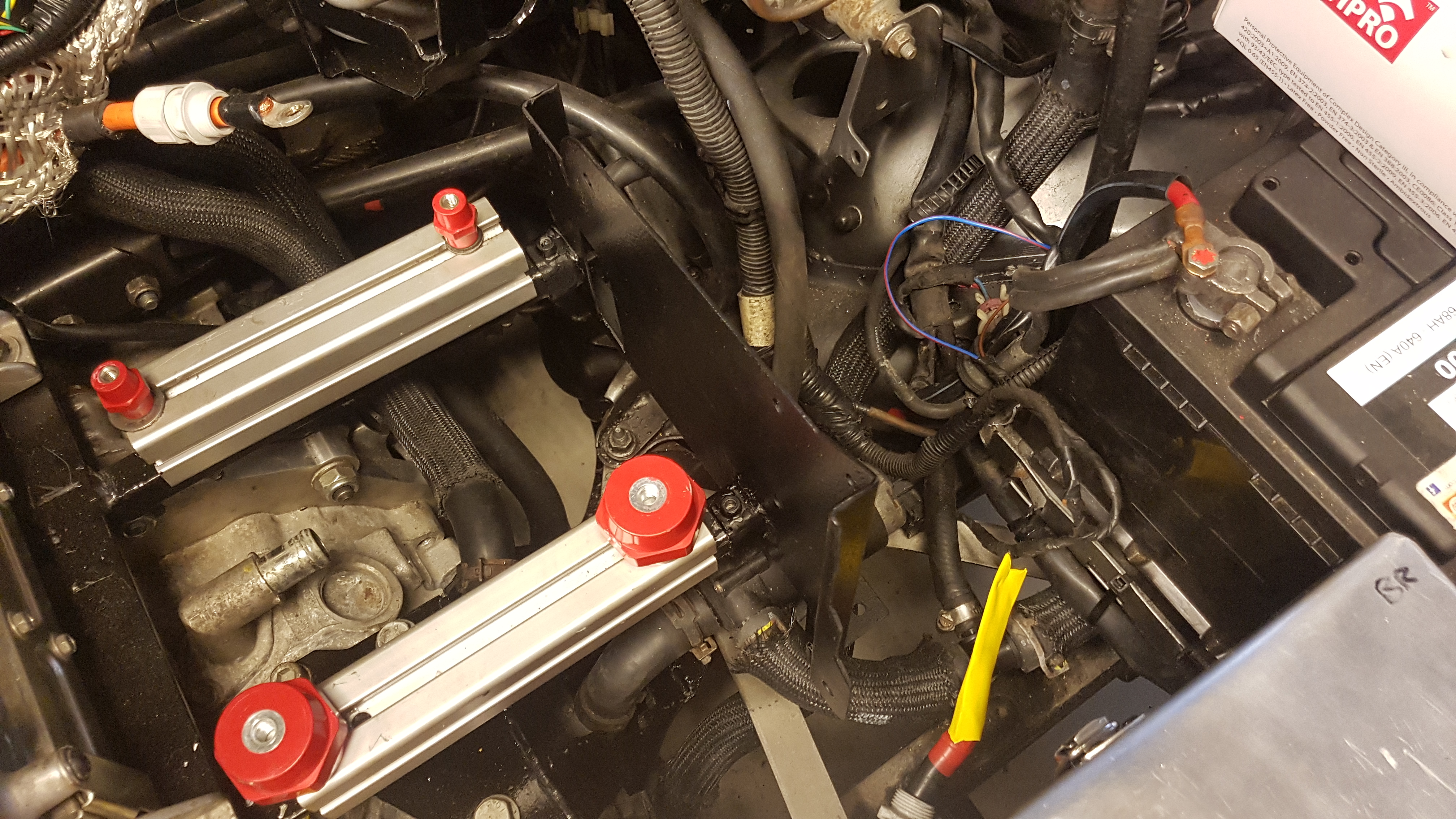 12v added via a supply from the ABS unit in the boot plus the proximity and control and the HVJB, charger and anything else that felt the need is well grounded to the chassis. And yes... eagle eyes may have noticed that I did see fit to loacte the precious Gen 2 on a block of solid mahogany. Quite an insulator...