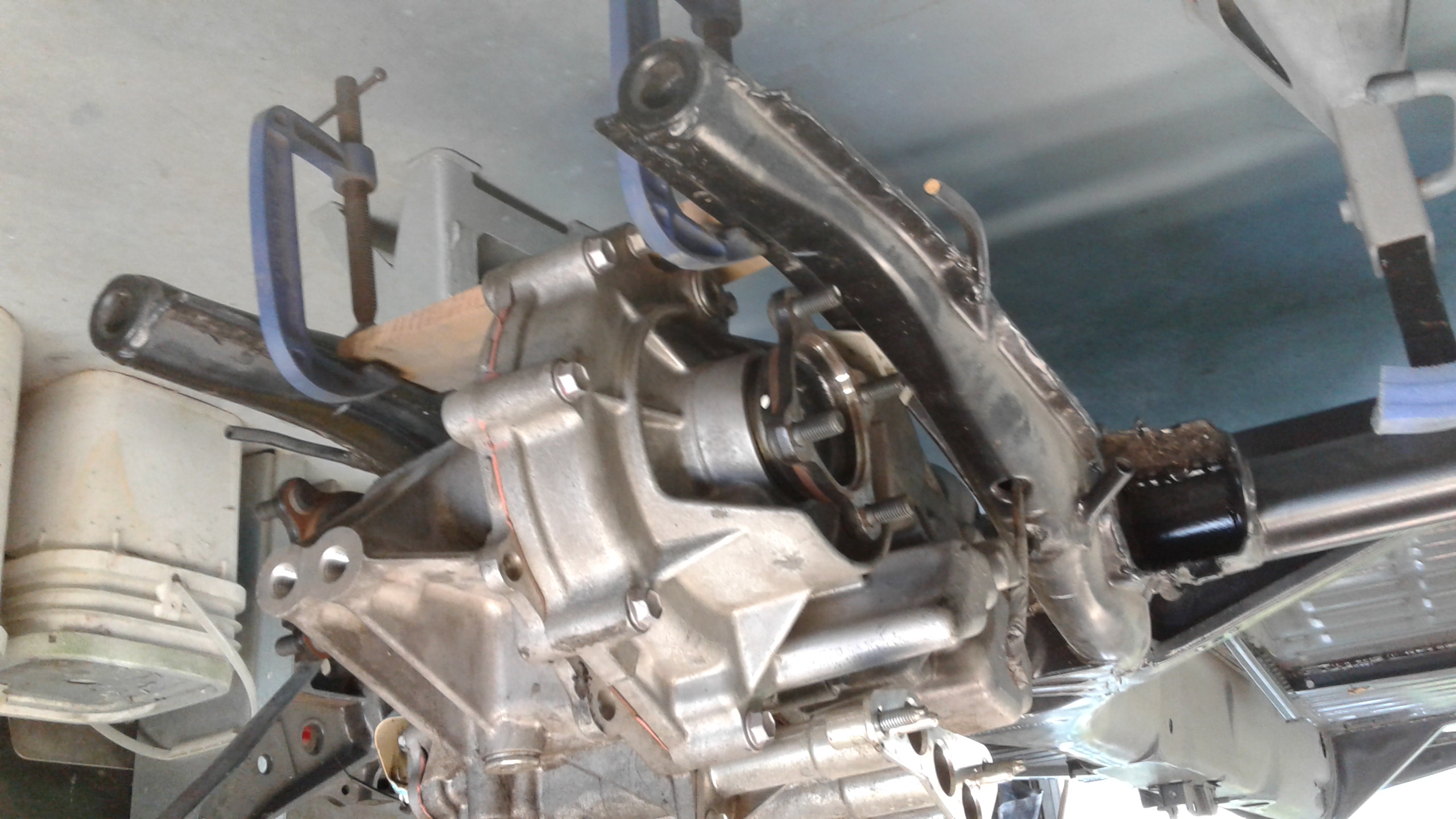 Hi Zookeeper, I though you might like to see these pics of an MGR sitting with its axle centres within a few mm of the original VW transaxle. To get it perfect i would need to lose the bottom cooling fin off the resolver. Fabricating mountings looks pretty straightforward and some firm engine mount rubbers should mean there is little movement to cause problems.
