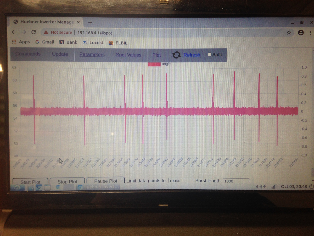 I have disconnected everything between the logic board and the inverter. With a 5V connection to R38 I can start the logic board but I still have the spikes in the angle plot.