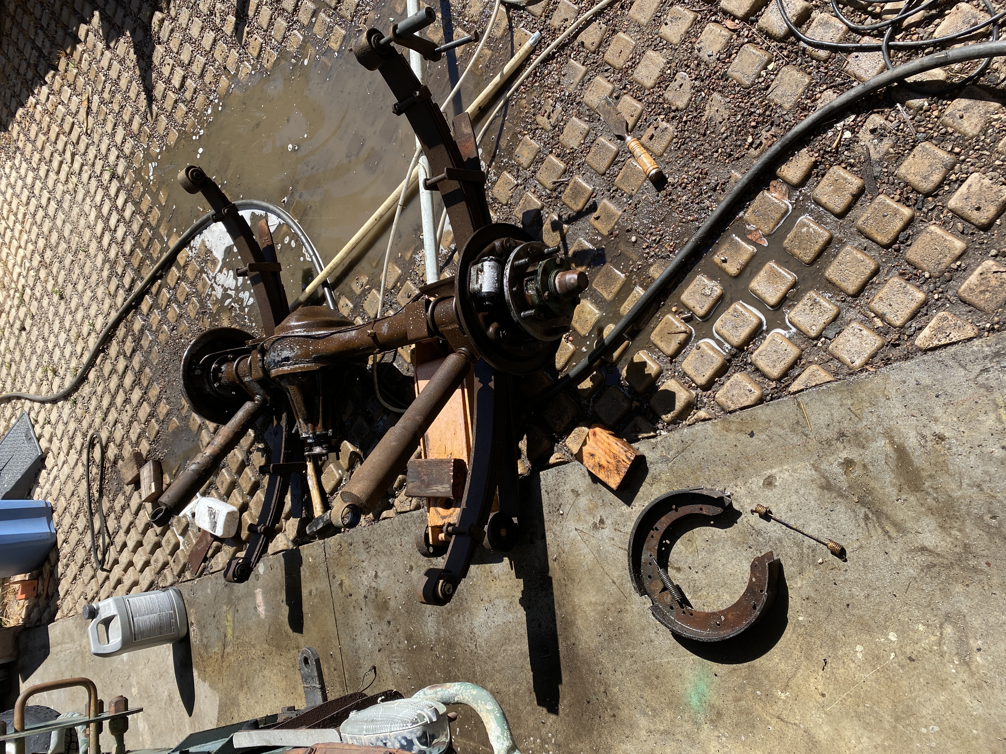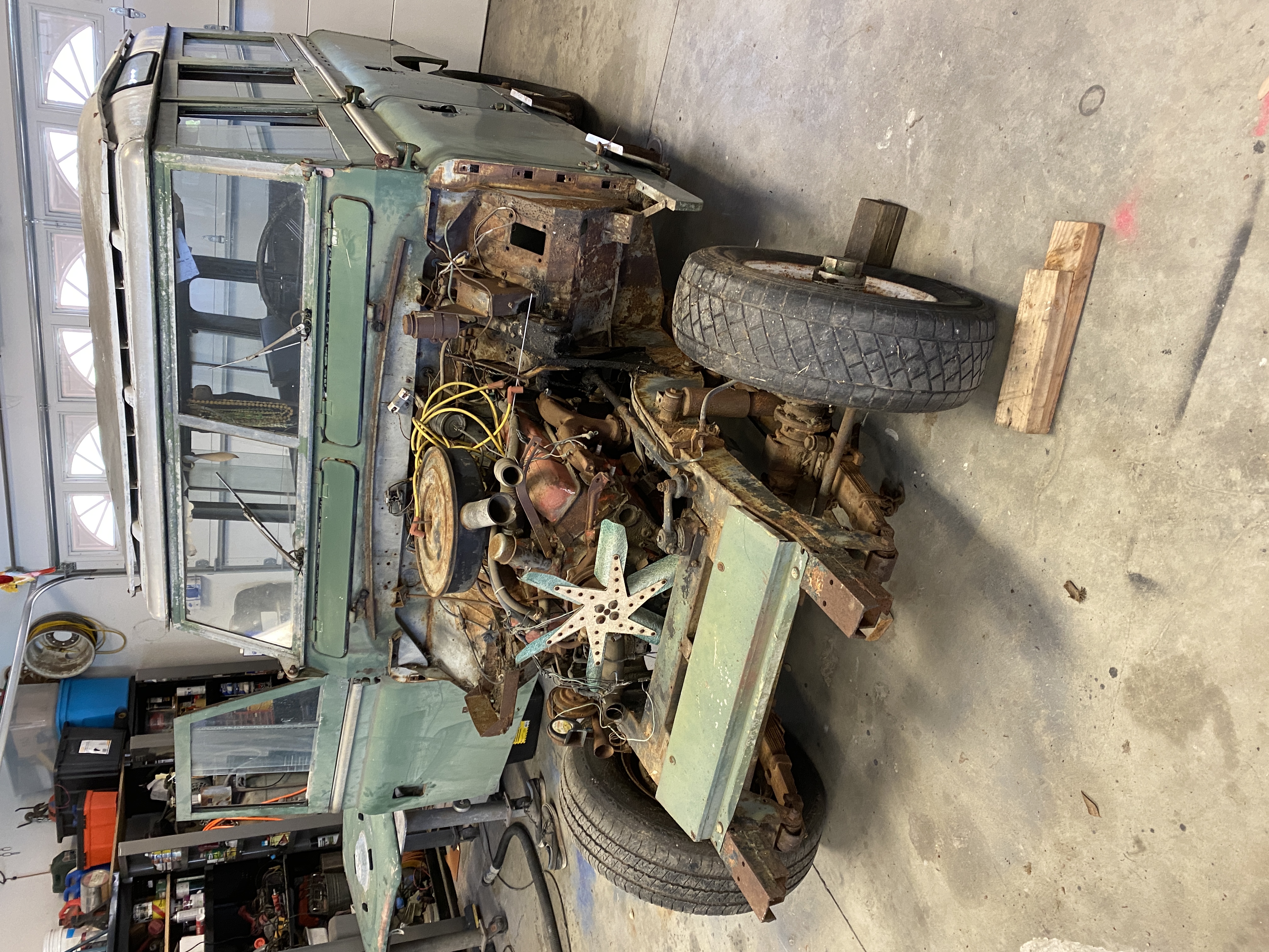 Thought I’d start a thread here to share my project. I picked up what I thought was a Land Rover “Defender”. Since then I have been “educated”. This is a bucket list vehicle for me as I have always loved the look. I’m a Tesla owner/fanboy so my project has to be Tesla based. My approach is not unique, rather it’s inspired by projects that I’ve seen on the web. The vehicle was an estate sale find, purchased and stored several years by the seller. Last registered in 1985. It had a non working V8 conversion. Anything rubber on the car was rotten and required/s replacement. I have recently finished rebuilding both axles including bearings, seals, and brake hardware.