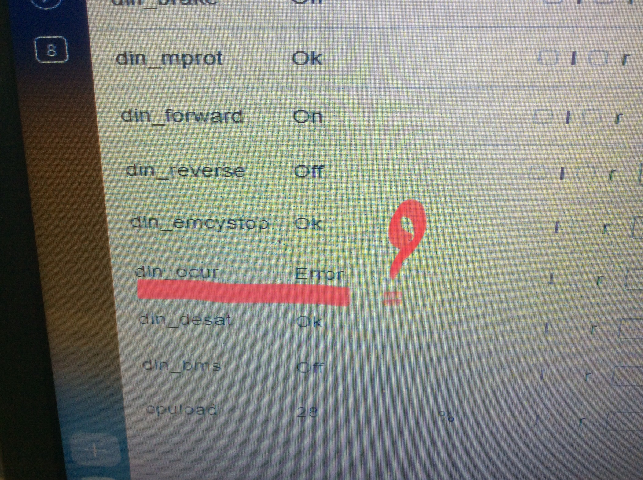 The din_ocur is in error status because in the design of the board, input PA1 is not connected, it should have no effect to the function.