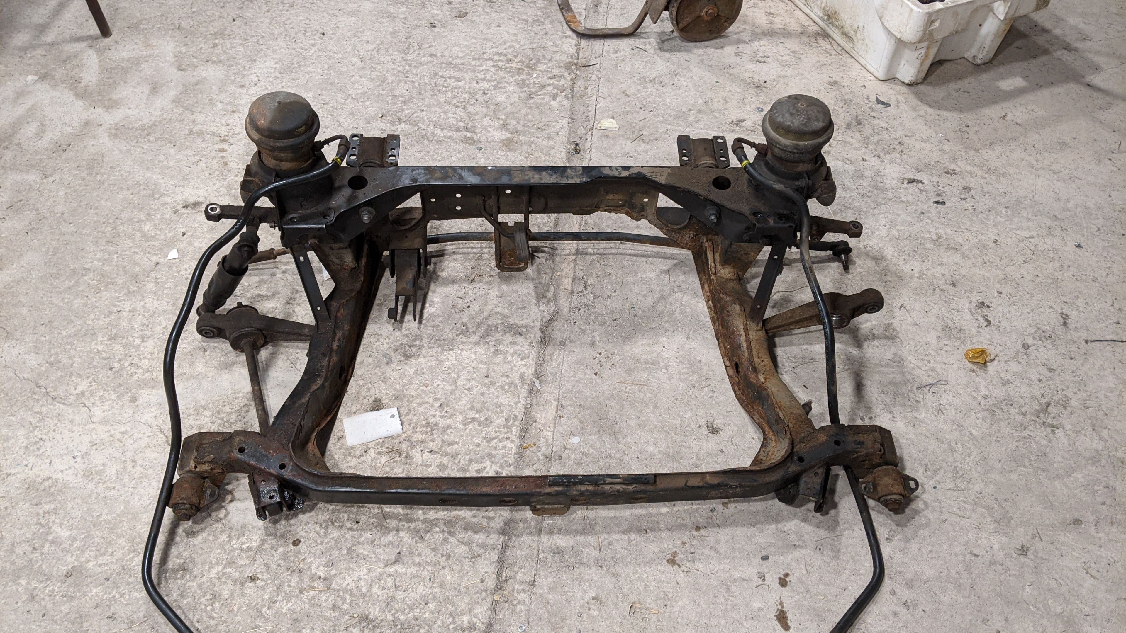 Engine has been sold. Subframe currently being cleaned up and repainted along with all the suspension components. It's all in pretty good condition given the age. No sign of anything more than just surface rust and road crude. Will wire brush everything down, treat hard to reach places with rust converter then Hammerite paint over everything.