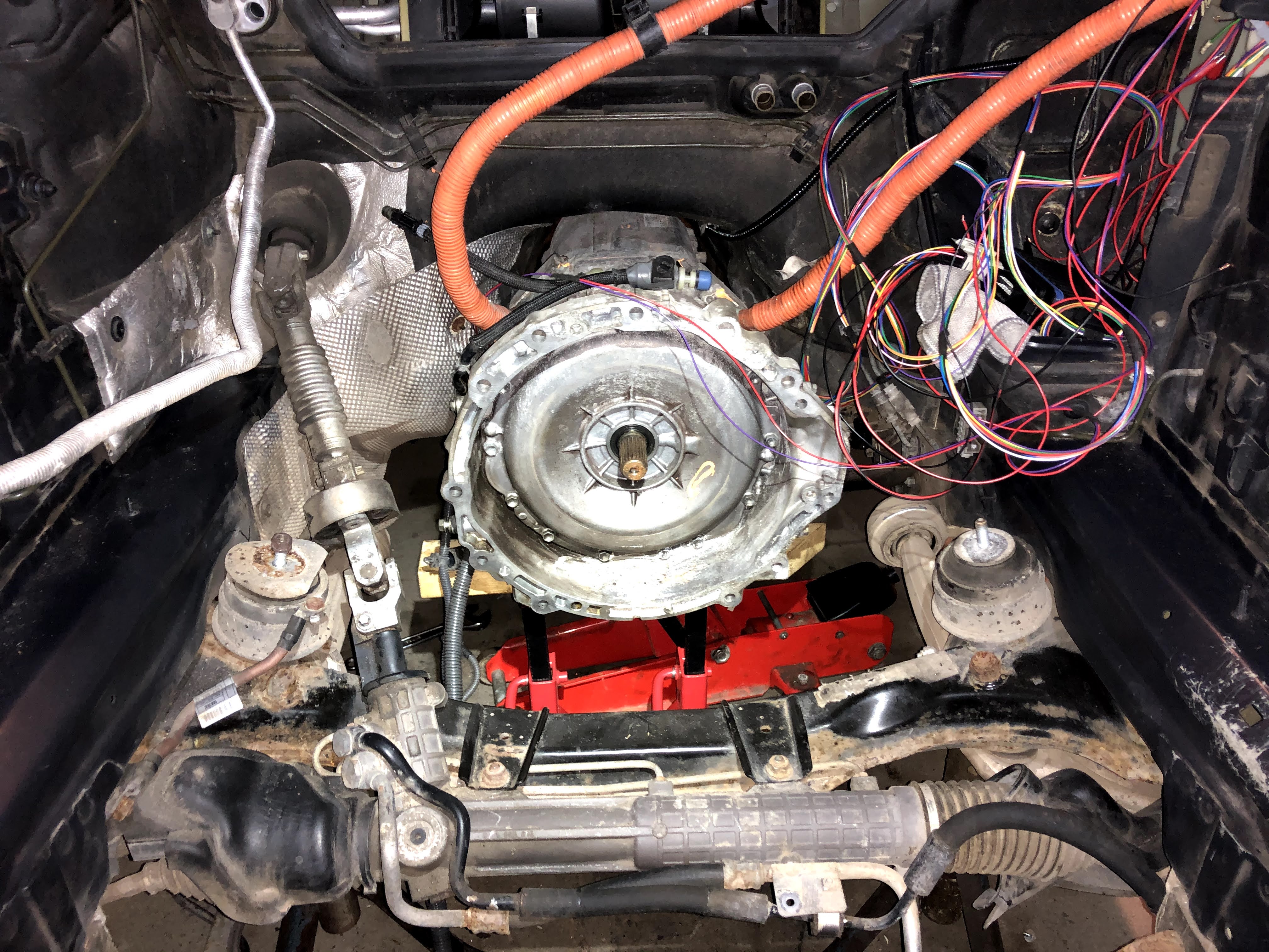 Fuel tank is now removed, space should be big enough for a model 3 PCS, planning to reuse the Fuel filler tube to the tank area as a housing for HV cables from the charge port