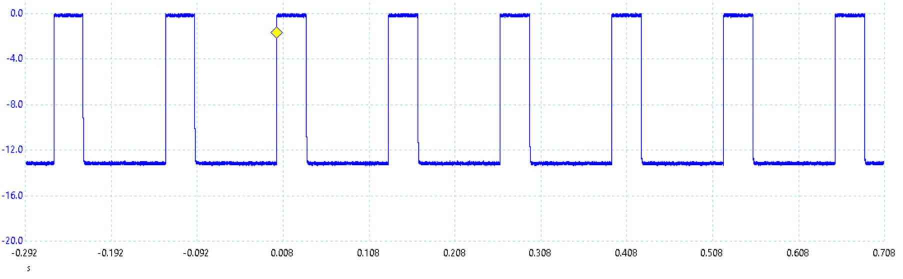 I have just picoscoped either NODD pin 21 or VLO pin 11 of Power Management Control ECU and got the following mark space oscillogram. I think i have the wrong polarity. I could not tell because i did this work when it was nearly dark. will try to get more waveforms in next few days.