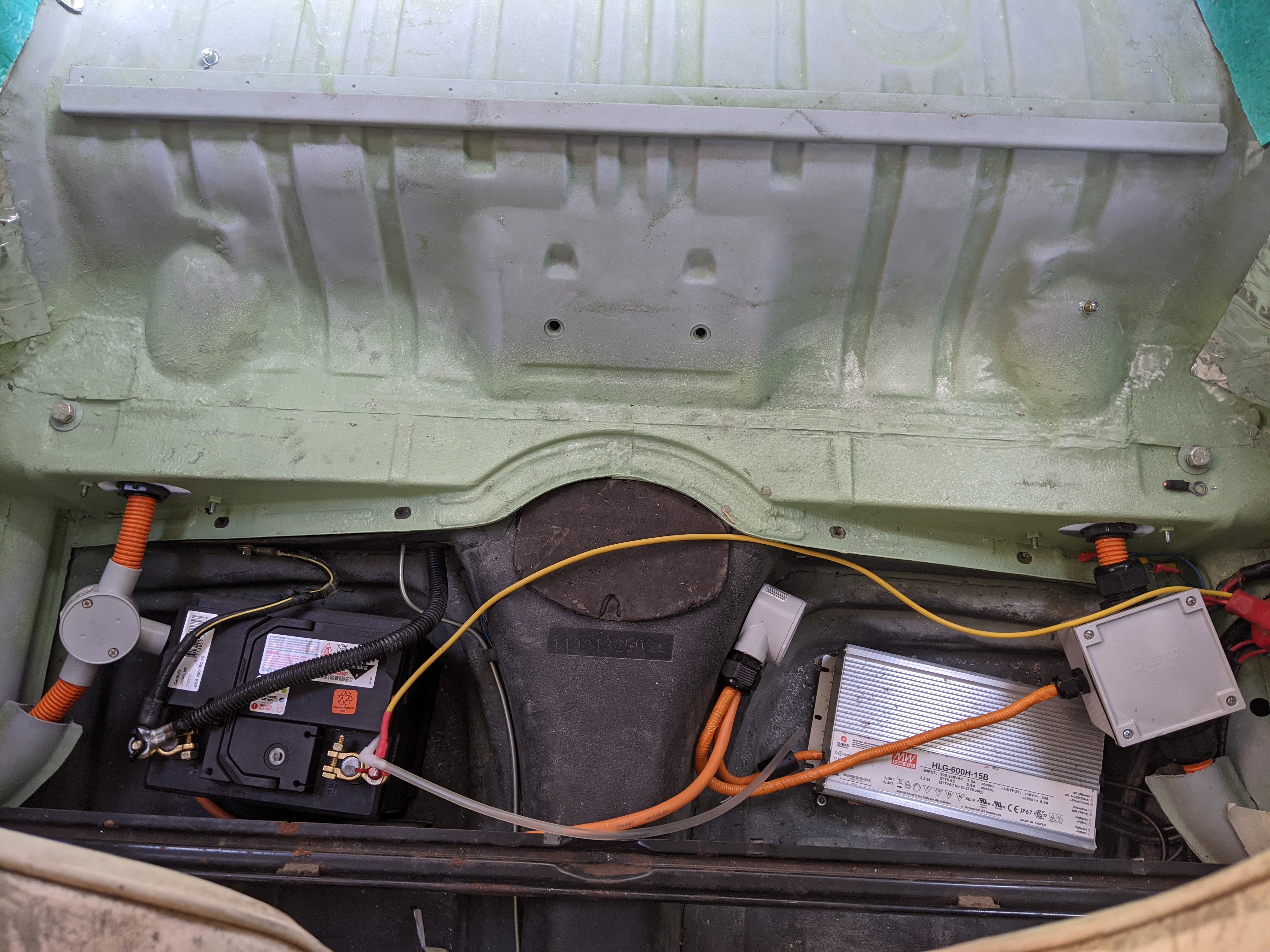 Spent a bit more time on the beetle this weekend, wired in the 240v charge inlet and interlock to prevent driveway, and plumbed in a small radiator to keep the whole lot cool. Just have to secure some of the wiring and i'm all finished in there.