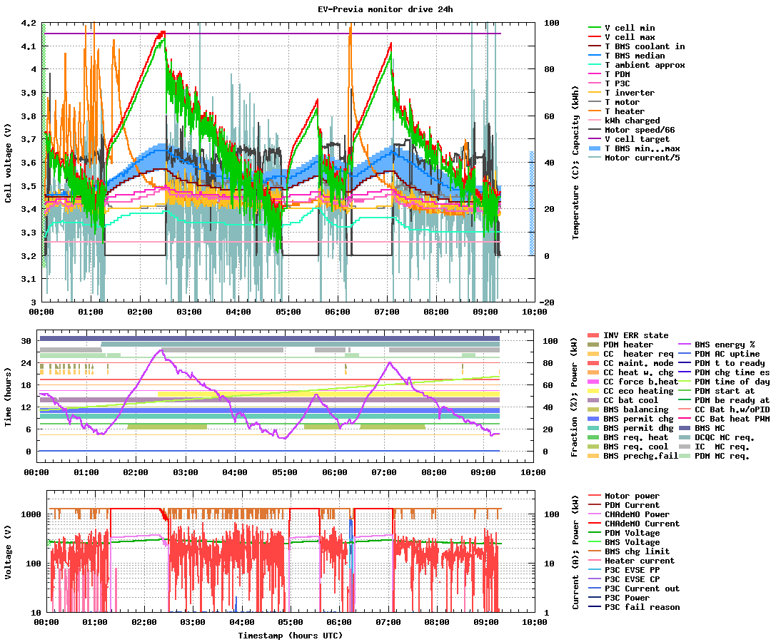 Attached is the graphs of the final 500km drive. Outside temperature was around 20°C. It was about 6 hours of driving and 3 hours of charging. I started at about 50% SOC and didn't shut down the car at any point.