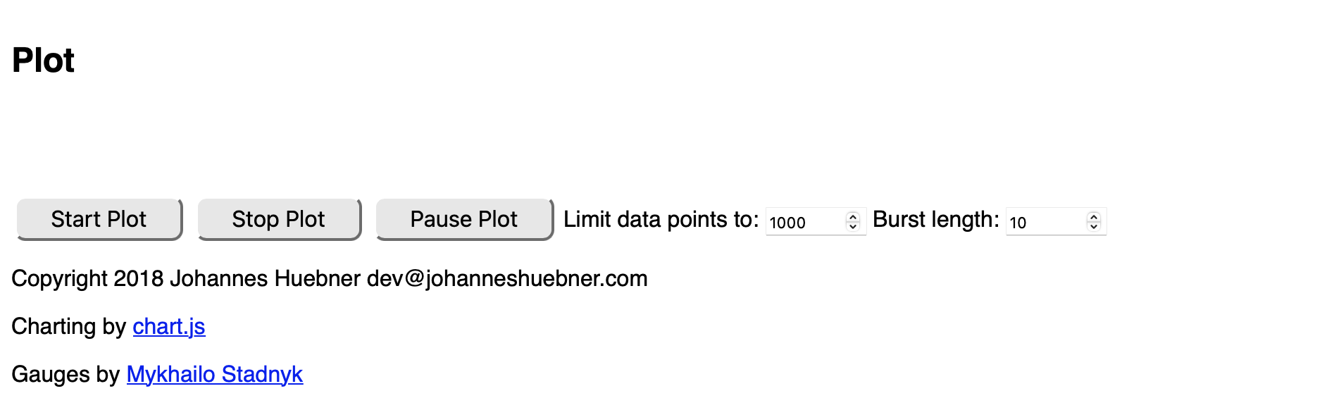 I just tried the plot function, and the buttons don't appear to do anything for me. The gauges don't work either, so I tried reloading SPIFFS via curl also without any luck. Any tips here? Using Safari browser if that makes a difference.